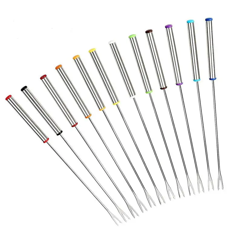 Эти вилки для фондю из нержавеющей стали легкие, но хорошо сделанные. Достаточно прочный, чтобы сохранить эти более тяжелые продукты, такие как фрукты, мясо, пирожные и т. Д. От коллапса. Идеально подходит для шоколадных фонтанов вечерние, сырные фондю