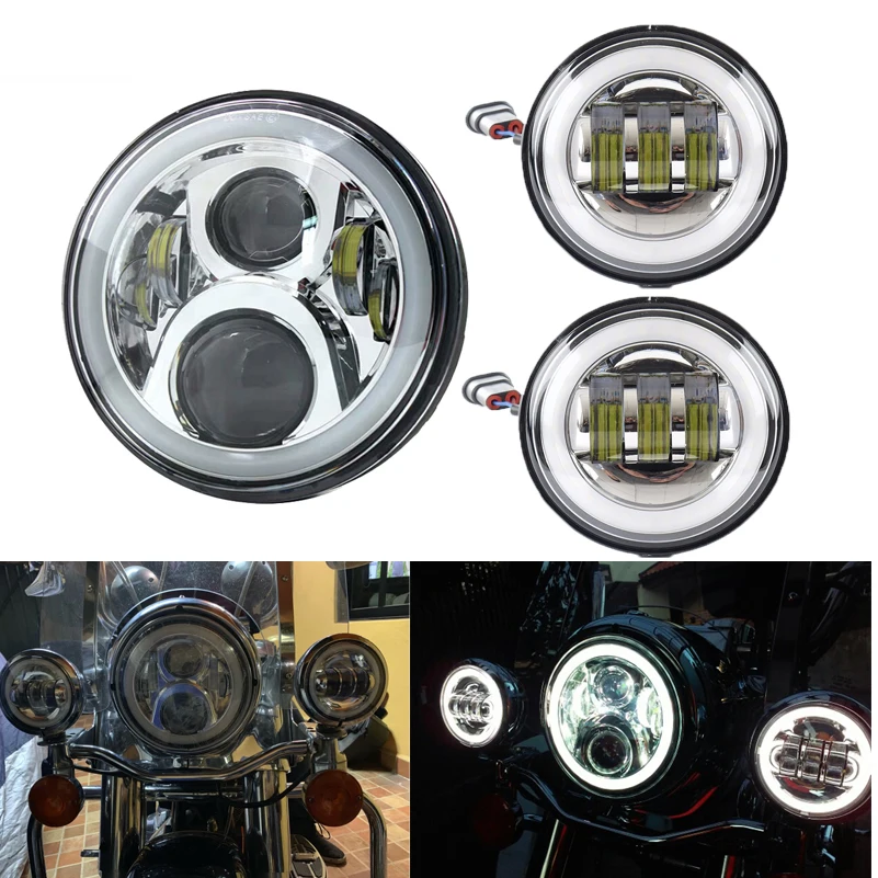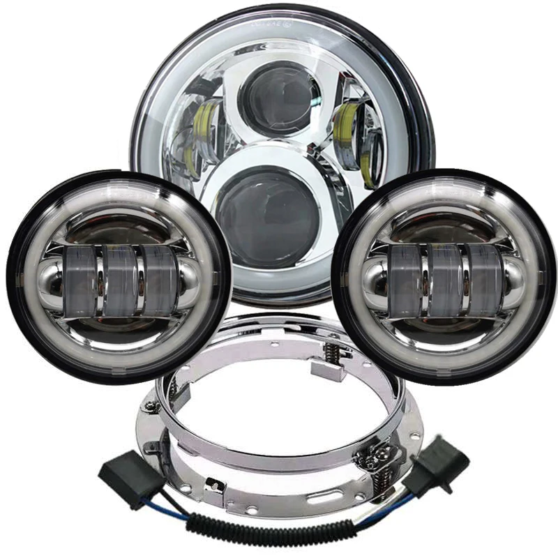 Мотоцикл 7 дюймов мото светодиодные фары для велосипеда H.arley с 4-1/2 "4,5" светодиодные лампы ближнего света Противотуманные фары и 7 "кронштейн Монтажное кольцо
