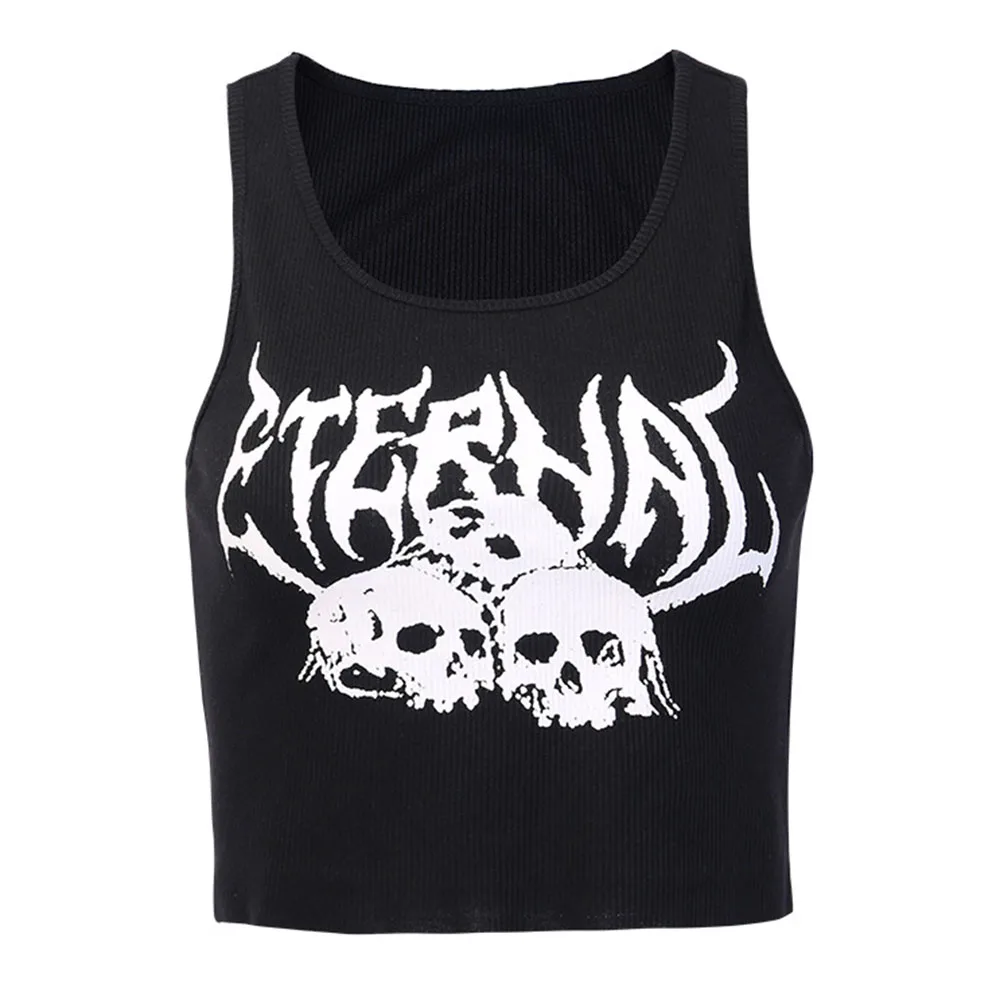 E-girl Dollskil укороченный топ Y2K, готический вечный череп, женские шорты, летняя Harajuku укороченная футболка, Топы, вязаная одежда для кукольного мастерства