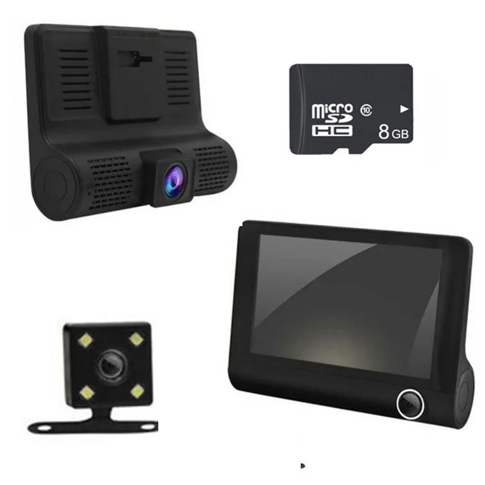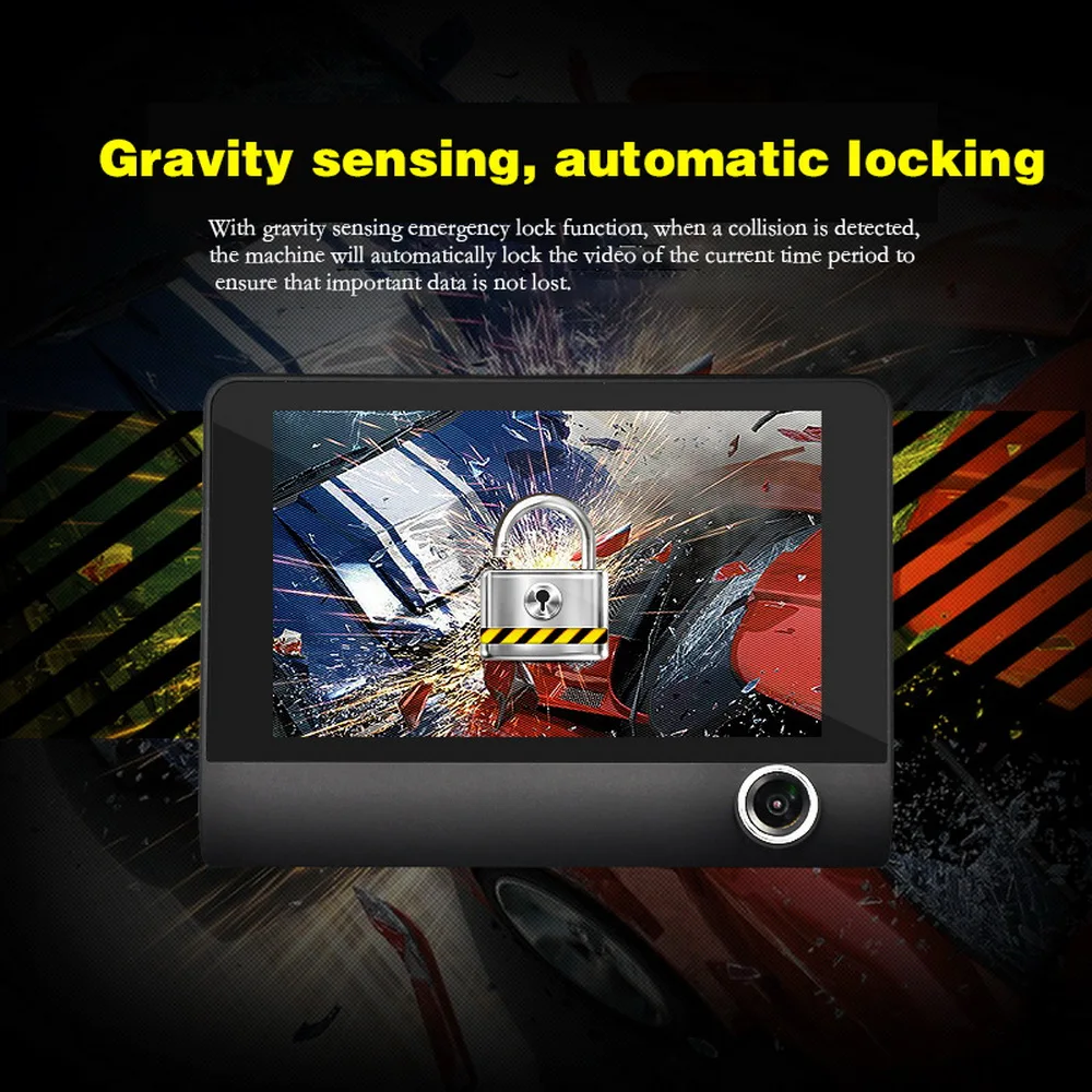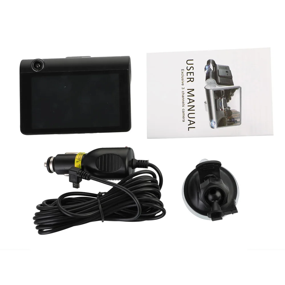 * 3 объектива камеры: оснащен фронтальным обзором, автомобильным внутренним обзором и задним обзором. При реверсе видеорегистратор автоматически переключается для отображения изображения заднего объектива, а полный экран отображает заднюю среду, поддерживающую Реверсивный режим.