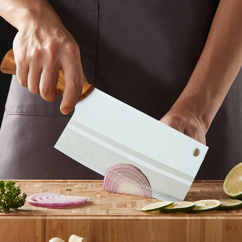 Экономия усилий: Физический дизайн, рукоятка и сцепление двигаются вперед, чтобы получить короткое расстояние и сделать его больше усилий, экономя для использования на кухне Деревянная ручка ручной работы: полностью ручная деревянная ручка для лучшей долговечности и длительного использования. Полная конструкция tang: цельный кованый дизайн, идущий прямо до конца эргономичной ручки ножа, проверенный процесс заземления делает края лезвия чрезвычайно острыми из коробки Многофункциональный: Этот профессиональный нож-Кливер легко справляется с вашими повседневными кухонными заданиями: измельчение, нарезка, измельчение и нарезание фруктов, овощей и нескольких видов мяса.