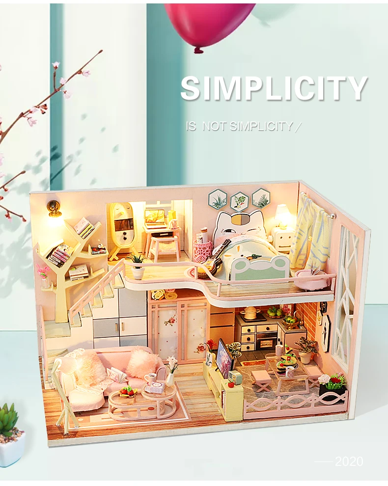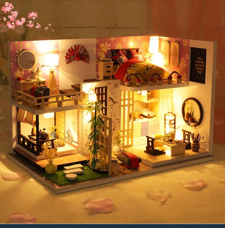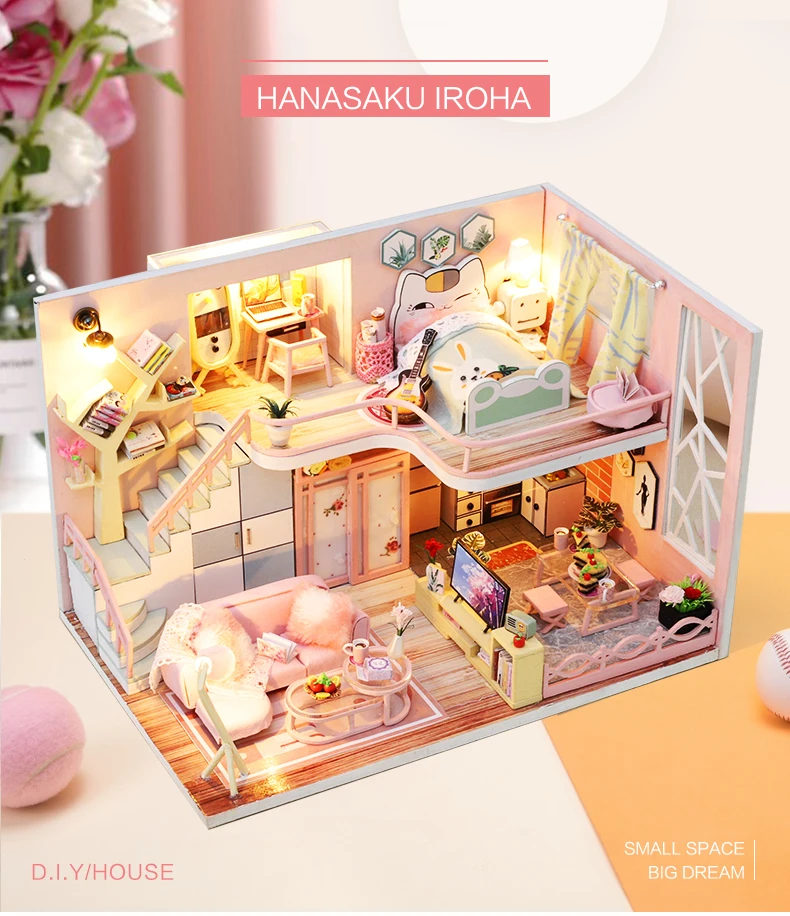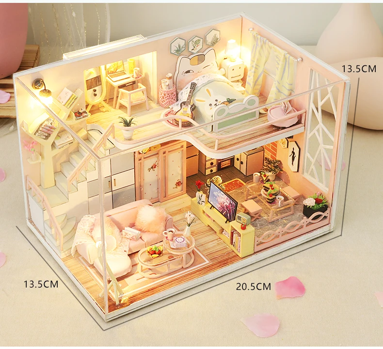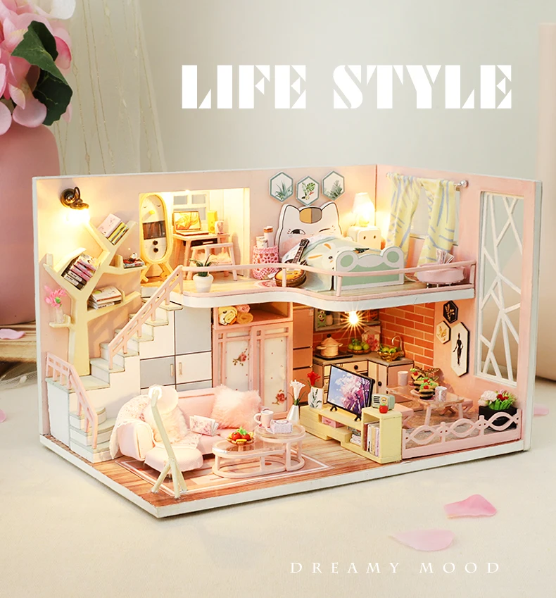 Миниатюрный деревянный кукольный дом, все мебели такие же, как на изображении, они поставляются с кусочками, должны быть собраны