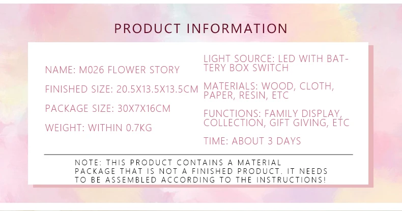 1. Инструкция на английском языке получена по электронной почте или включена в посылка. 2. Возраст: подходит для детей старше 8 лет. 3. Клей/инструменты/батарея/не включены в посылку.