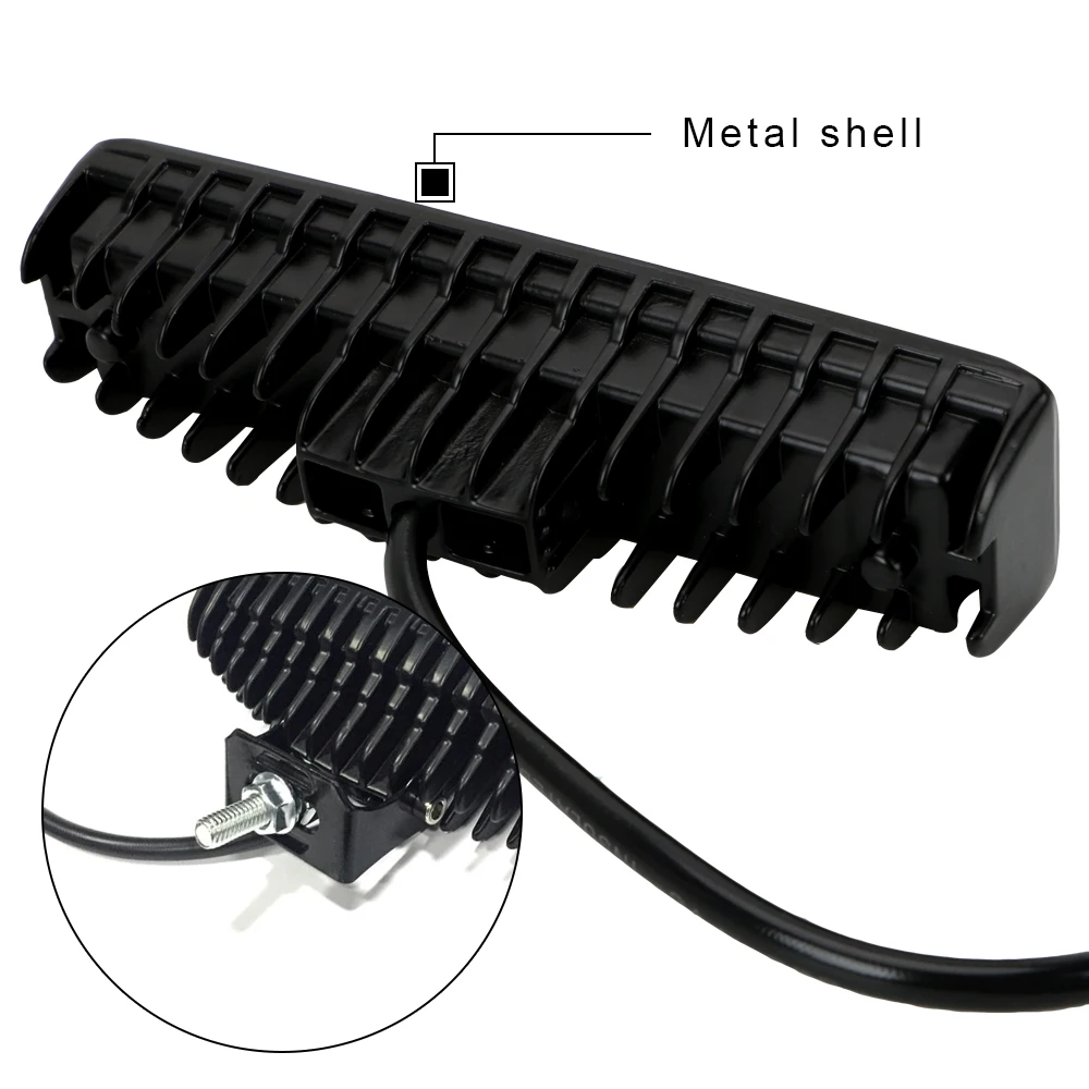 Светодиодный источник питания: 36 ВтРазмер: 15 смРабочее напряжение: 12-24 ВВодонепроницаемость: IP 67Срок службы: более 50000 часовРабочая температура: -45 ~ 85 °CЦветовая температура: 6000K (белый светильник)Материал: литой под давлением алюминиевый корпусМатериал линз: поликарбонатные линзы покрыты твердым лаком, 100% оптически чистыеДетали упаковки:
