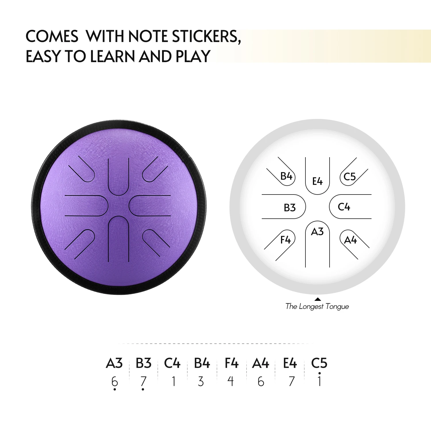 Легко и весело играть:Просто используя молотки или руки, чтобы побить барабанные языки, Даже новички могут играть замечательную музыку, и наклейки облегчат обучение и воспроизведение.