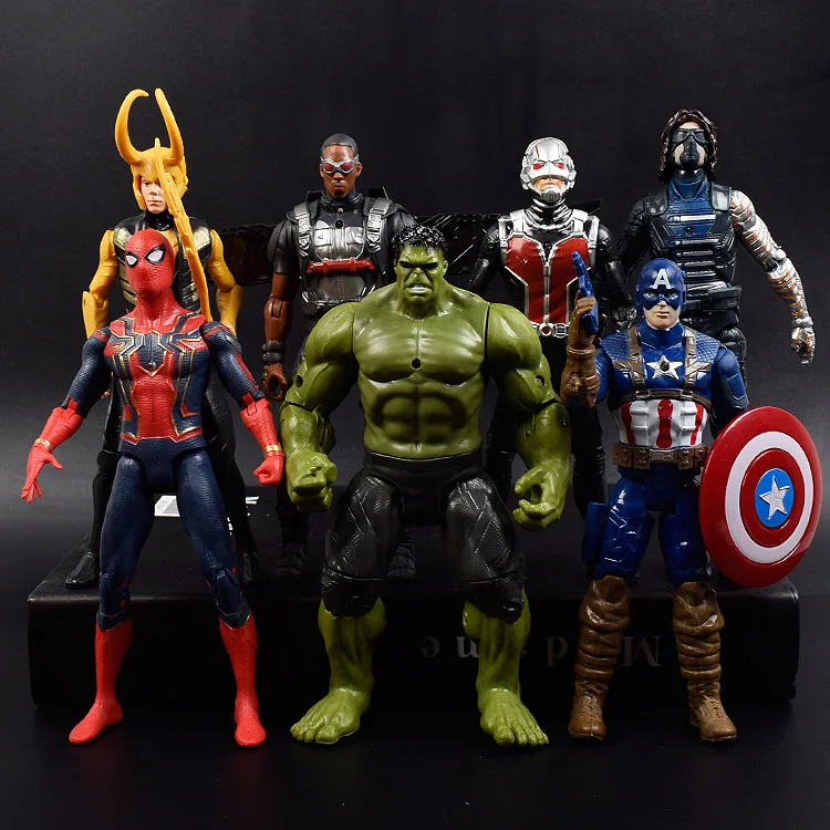 Название продукта: Marvel Мстители Веном Бэтмен флэш Супермен Спайдермен танос Халк Железный человек Тор Росомаха фигурка игрушки подарки для детей Материал товара: ПВХ Размер: около 16 см Посылка: упакован в пакет