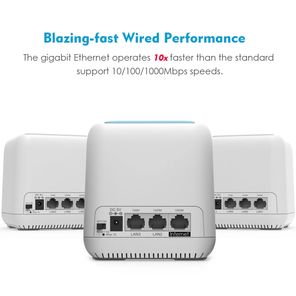 Описание продукта: Традиционный одиночный беспроводной маршрутизатор в домашней среде, как правило, вызывает резкое падение скорости Wi-Fi через несколько блоков стены. Вся Домашняя Система Wi-Fi, распределенное покрытие беспроводной сети, имеет более высокую пропускную способность, чем традиционные роутеры плюс ретрансляторы, более стабильные сигналы, более быструю сеть и функцию touchlink, не нужно пароль может быть легко подключен, когда ваш друг придет к вам домой. Характеристика продукта: ✅【Революционная сеточная система WiFi-сеточный роутер + сеточные спутниковые точки, каждый из которых является точкой Wi-Fi, несколько точек wi-fi работают вместе, чтобы создать супер сильную, быструю и бесшовную сеть Wi-Fi. Вы можете автоматически подключаться к лучшему Wi-Fi без ручного переключения между каждой точкой; Получить Интернет везде, устранить мертвые зоны wifi, позволит вам наслаждаться плавным доступом в Интернет во время работы дома/работы онлайн/Телекоммуникации ✅【Eliminates мертвых зонах WiFi и buffering】-802.11ac Wi-Fi стандарта обеспечивает скорость передачи данных до 1200 Мбит/с (2,4 ГГц Макс до 300 Мбит/с + 5ghzmax до 867bps). Технология Beamforming улучшает покрытие Wi-Fi, каждая точка покрывает 1500 кв. футов, поэтому 3 точки могут покрывать 4500 кв. футов, добавьте еще 1 спутниковую точку, чтобы получить более 1500 кв. футов покрытия. Можно добавить до 9 точек спутниковой связи, охват до 15000 кв. Футов ✅【Patent Touchlink технология-просто прикоснитесь к верхней части, люди могут подключить wifi без пароля. Это очень удобно, когда у вас есть вечерние Или пригласите друзей ✅【Быстрая и простая Настройка с помощью WAVLINK App】-Сканируйте qr-код, загрузите приложение WAVLINK для быстрой настройки, посмотрите на каждое подключенное устройство и пропускную способность, сделайте паузу некоторое время в течение некоторого семейного времени или дайте вашим детям отдохнуть, расставьте приоритет устройству, чтобы получить самую быструю скорость и многое другое ✅【Gigabit Ethernet Ports】-проводное подключение к вашему Smart TV и многое другое, работает на 10х быстрее, чем стандарт, помогает проводным устройствам для плавной игры и потоковой передачи данных Важное примечание: Скорость Wi-Fi и диапазон сети изменятся в различных средах и каналах, таких как толщина стены и расстояние и т. Д. Пожалуйста, поймите это.