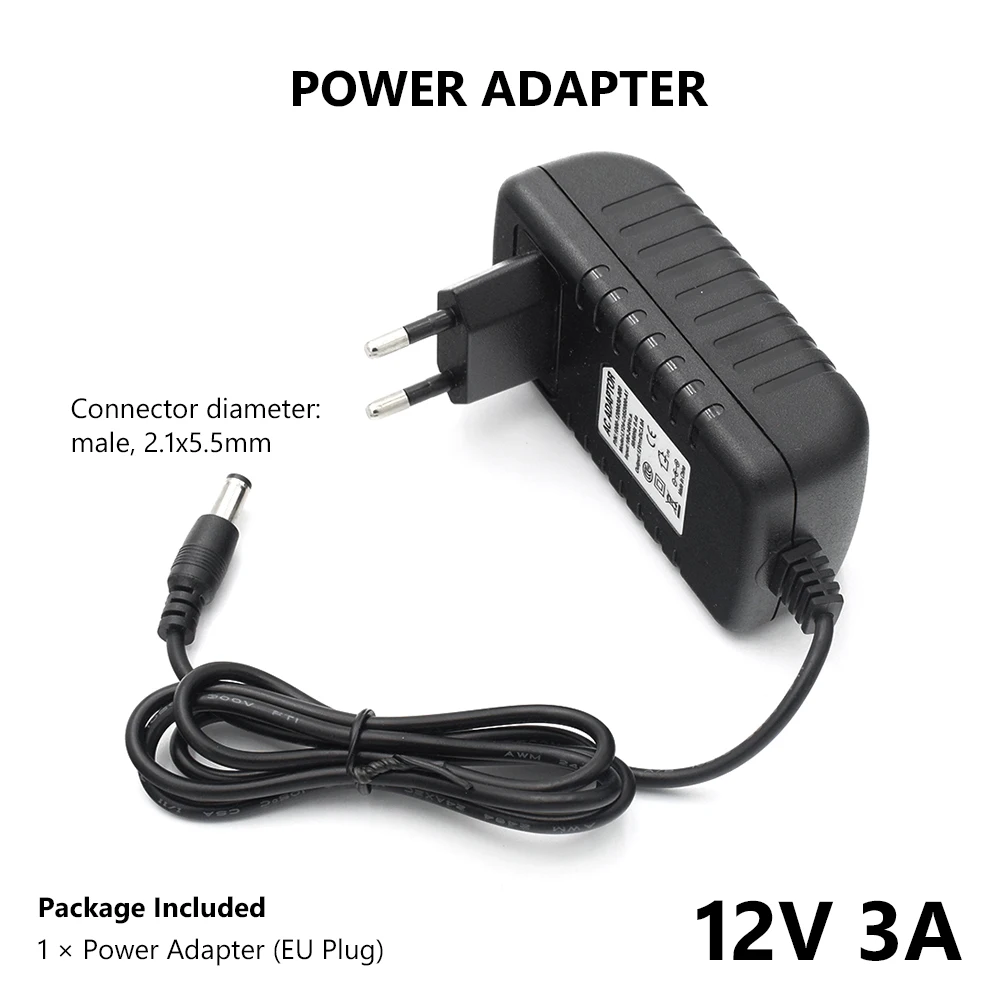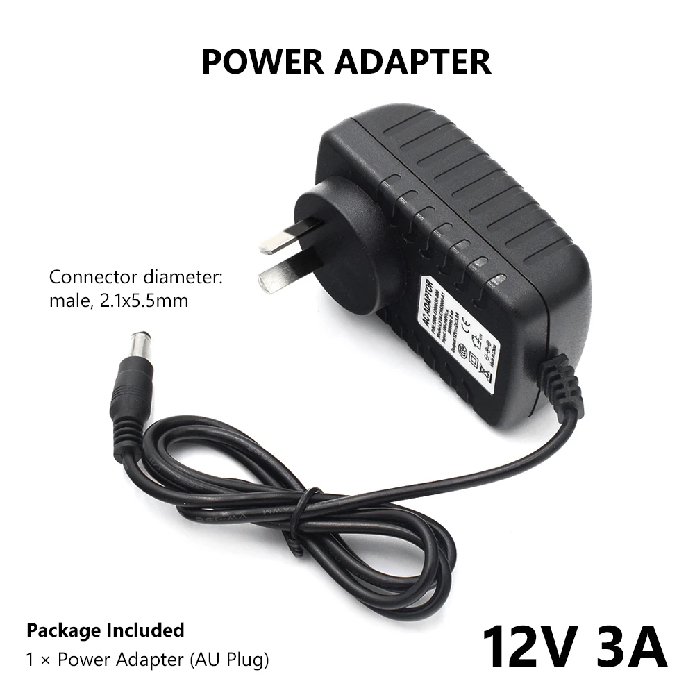 Практичный блок питания DC 12 V 3A адаптер питания AC 100V-240V к DC 12 V зарядное устройство UK/AU/US/EU вилка черный корпус ABS