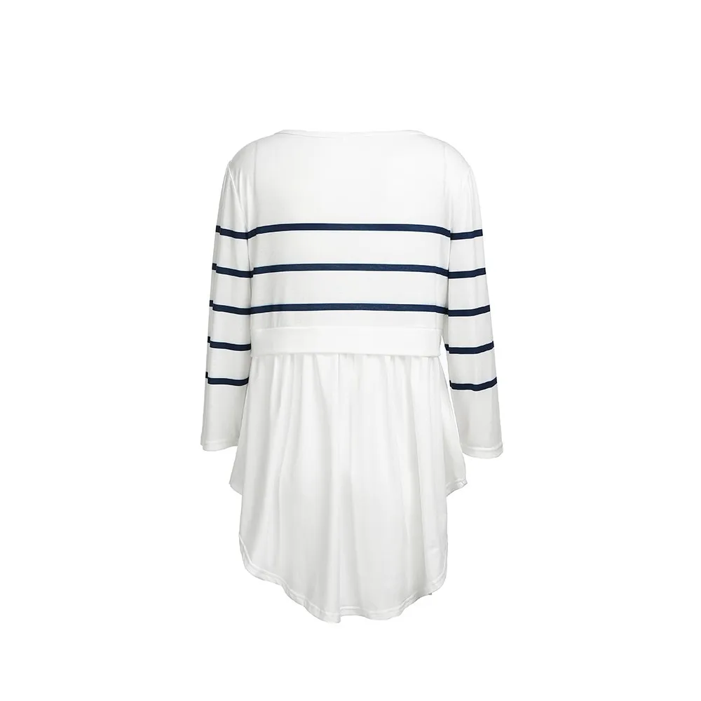 Женская футболка, блузка для беременных женщин, мам, кормящих детей, беременных, с длинными рукавами, полосатая блузка, Одежда для беременных