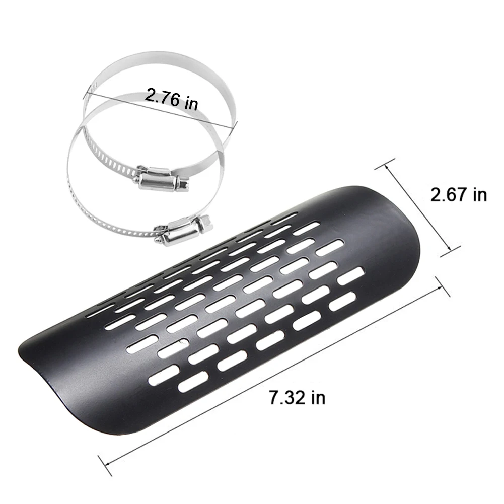 Посылка: 1 x тепловой экран глушителя выхлопа, 2 x регулируемые монтажные зажимы