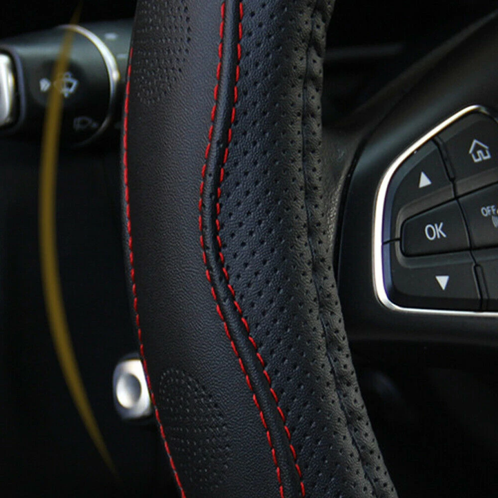 Материал: из искусственной кожи Стиль: четыре сезона Цвет: черный и красный Соответствующий Диаметр руля: 14,57 "(37 см) до 15" (38 см) Подходящие модели: более 98% семейных автомобилей Особенности: 1. Модный спортивный дизайн. 2. Противоскользящий со смесью простого материала. 3. Помассируйте ладонь, чтобы снять усталость от вождения. 4. Без искажений, без выцветания и проблем при экстремальных температурах. Посылка 1x38 см чехол рулевого колеса автомобиля Примечание 1. Из-за освещения и съемки цвет может отличаться. Пожалуйста, поймите 2. Если у вас есть какие-либо проблемы, пожалуйста, напишите нам по электронной почте и дайте нам шанс помочь вам, прежде чем оставить какой-либо отзывы В. Большое спасибо!