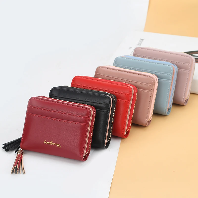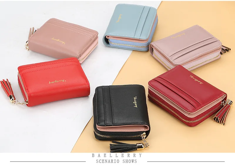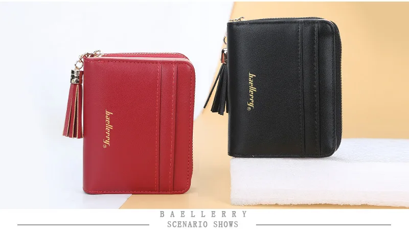 Новинка 2022, женские кошельки, короткий женский кошелек на небольшой молнии, кошелек для монет, держатель для карт, роскошный бренд, Женский кошелек из искусственной кожи, красный, черный
