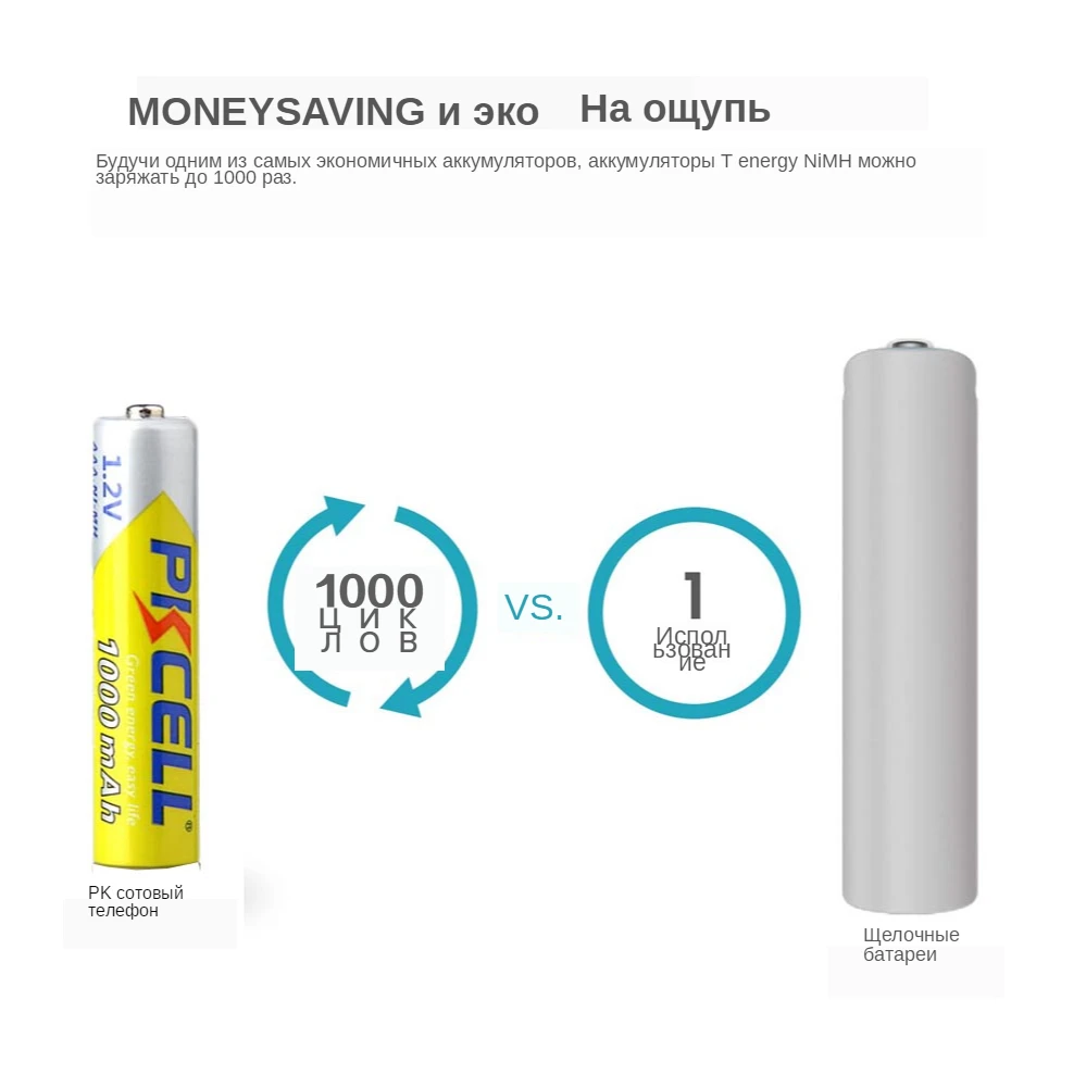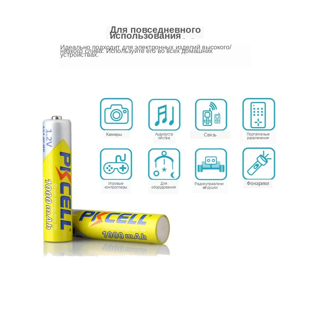 Тип батареи: 1.2В Ni-MH AAA 1000mAh аккумуляторная батарея Бренд: PKCELL Модель: ni-mh 1,2 V AAA 1000mAh Размер: AAA Напряжение: 1,2 В Нормальная ёмкость:1000 мА*ч Размер (макс): диаметр: 10,5 мм * Высота: 44,5 мм Стандартный ток заряда: 100 мА время: 15 ч Ток быстрой зарядки: 344ма время: 4 ч Применение:Цифровая камера, портативное видео, игра, фонарик, пульт дистанционного управления, игрушка, MP3/MP4 плеер, электрическая бритва и т.д.