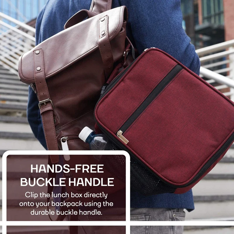 Независимо от того, являетесь ли вы громкой связью или ручкой, lunchbox включает в себя функциональность для подключения вашего обеда к рюкзаку, тренажерному залу или сумке для путешествий. Вы можете плотно держать на мягкой рукоятке с пряжкой.