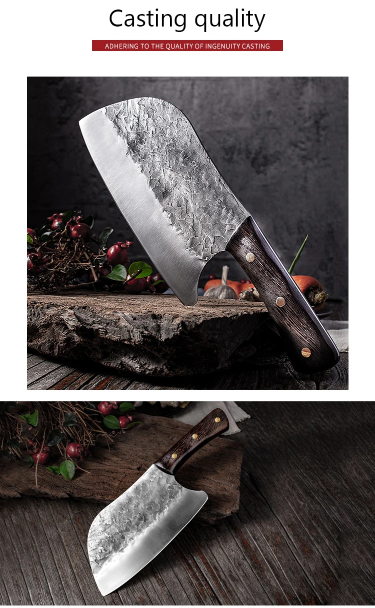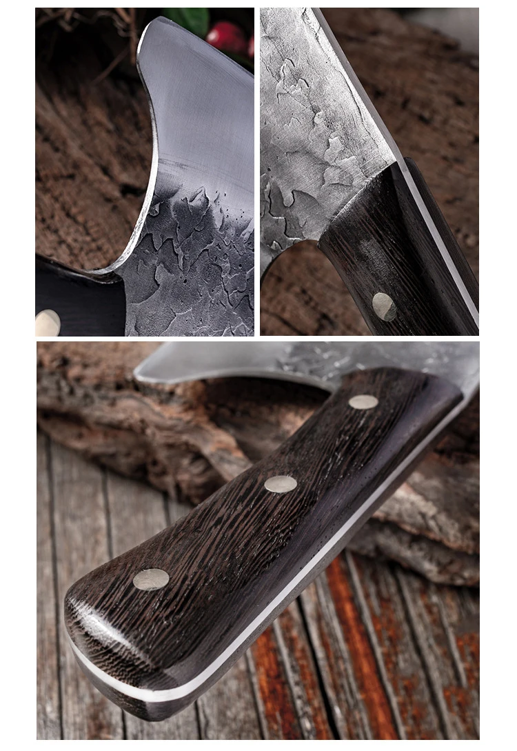 Длина лезвия: 198 мм Длина ручки: 102 мм Ширина ножа: 97 мм Толщина лезвия: 2,5 мм Материал лезвия: нержавеющая сталь 5CR15 Материал ручки: дерево венге + фиксация заклепок, эргономичный дизайн, удобное сцепление для длительного использования Вес: около 379 г Посылка включает: 1x8 дюймов ручной работы кованый китайский нож шеф-повара