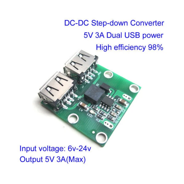 DC-DC Buck Step Down Converter 5V 3A Dual USB Charger Car Power Supply Module