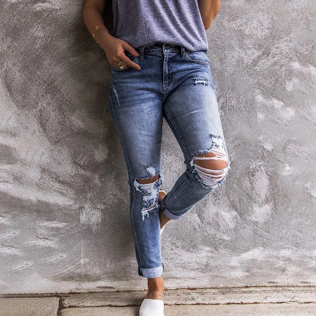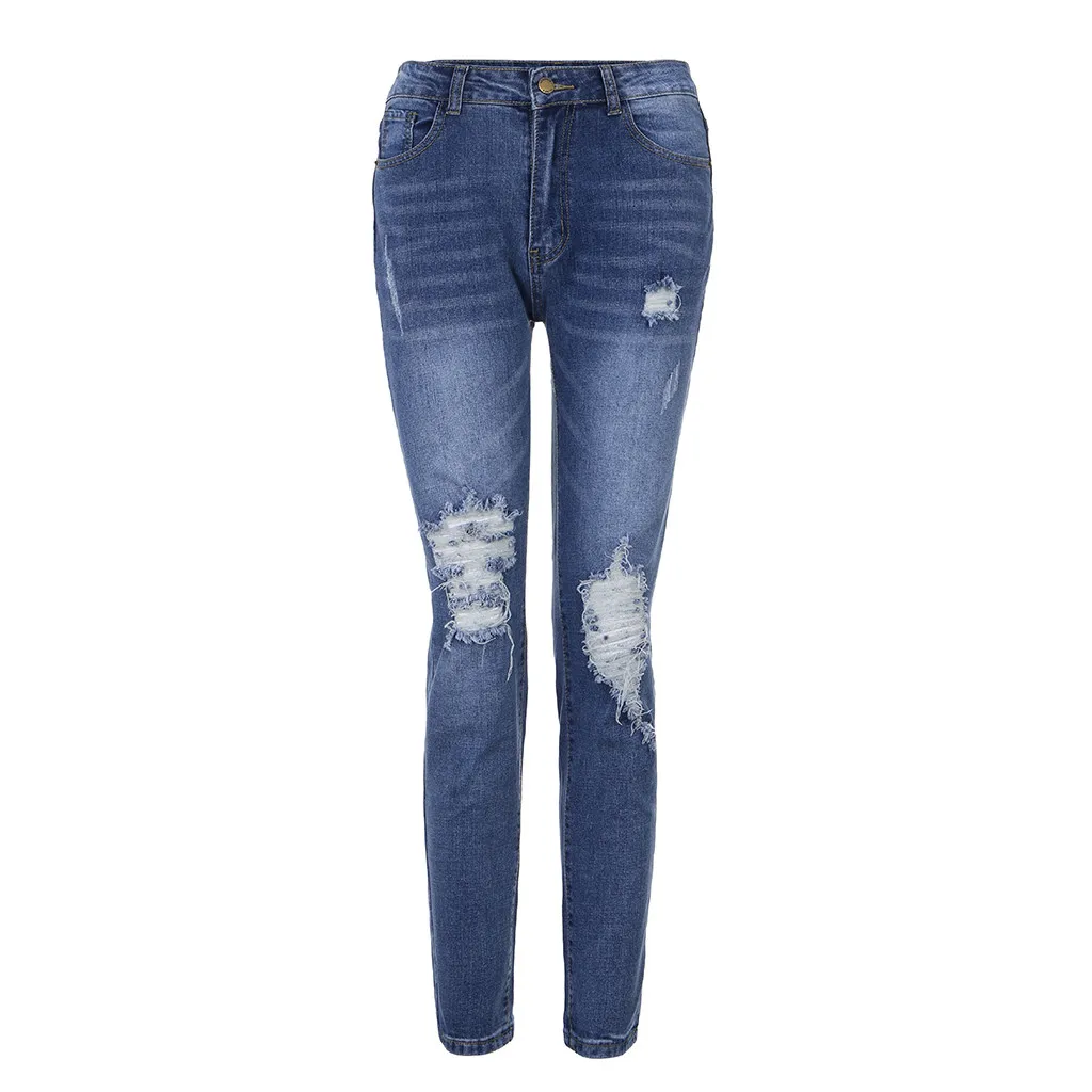 Женские облегающие джинсы со средней талией и дырками на пуговицах