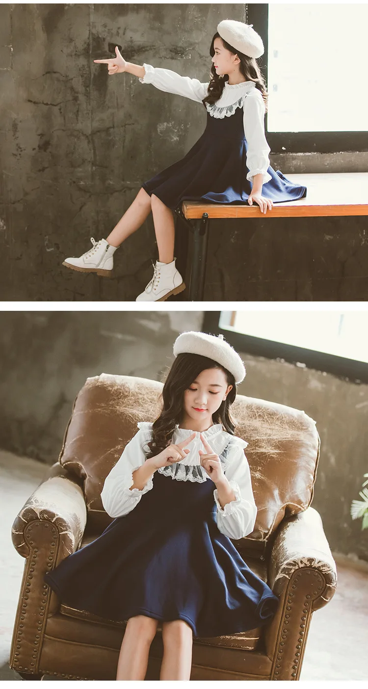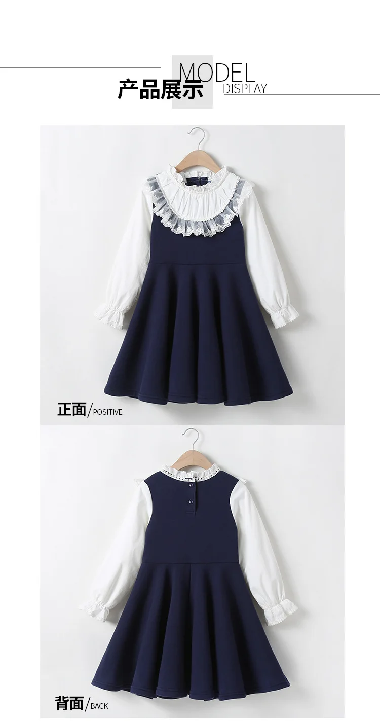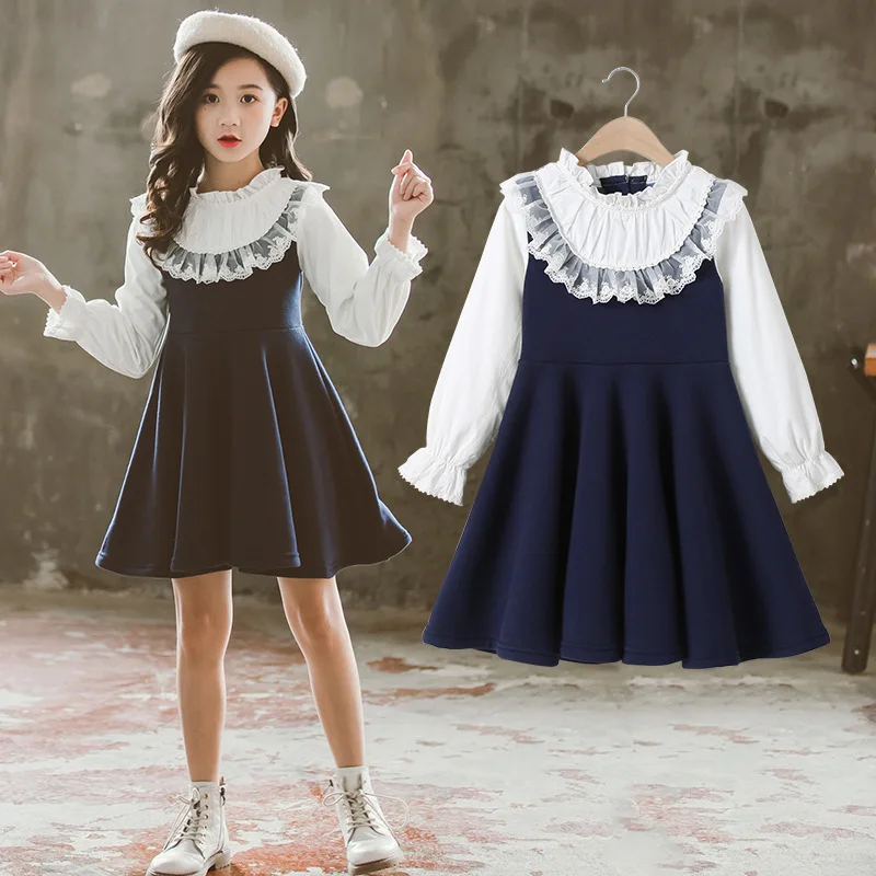 Детские платья принцессы для девочек 4, 5, 6, 7, 8, 9, 10, 14 лет, высококачественное осеннее Повседневное платье, Детская школьная одежда синего цвета