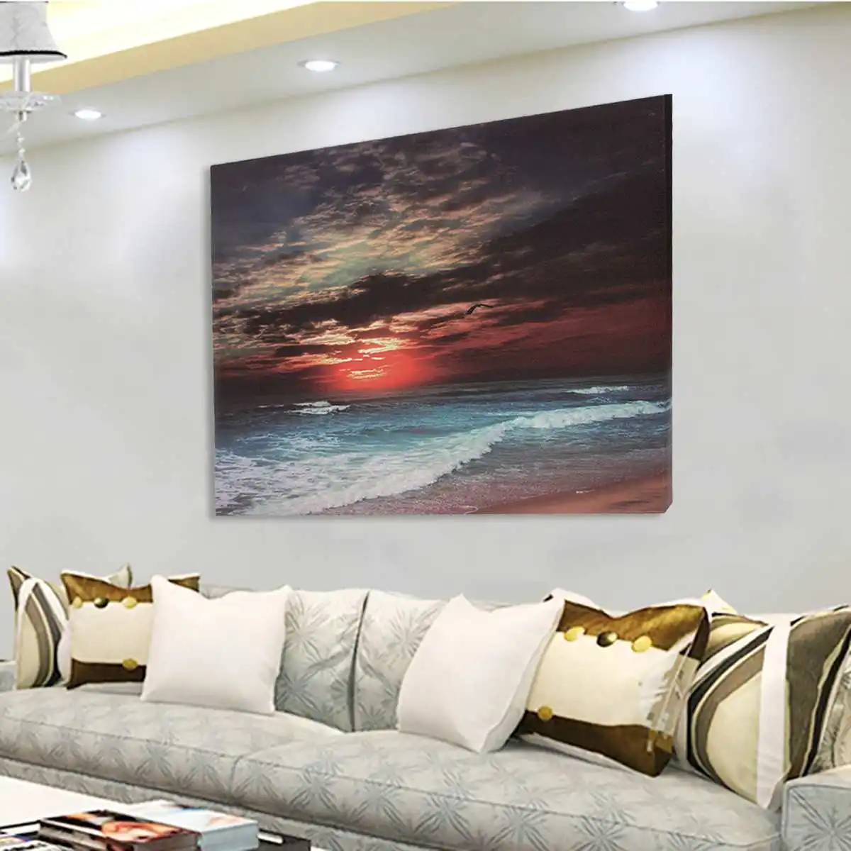 Название продукта: современный дом, один пляж, закат, картина маслом, холст, настенная живопись, декоративный спрей, живопись