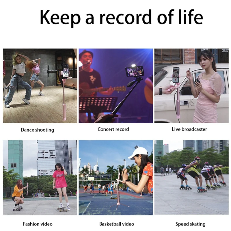 Перезаряжаемый беспроводной пульт дистанционного управления. Диапазон беспроводного подключения может быть до 10 метров, позволяет делать селфи-фотосъемку или вы можете отделить контроллер, чтобы делать групповые фотографии, такие как вечеринки, выпускной, свадьба, путешествия. Вы можете использовать его как обычную палку для селфи или как быстрый и легкий штатив.