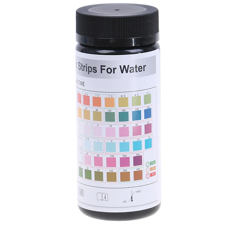 Просто Опустите одну тест-полоску в воду и подождите 2 секунды. Снимите тест-полоску. Подержите ее Горизонтально в течение 60 секунд, а затем сравните с цветом на таблице, чтобы определить наличие и дальность тестовых элементов.