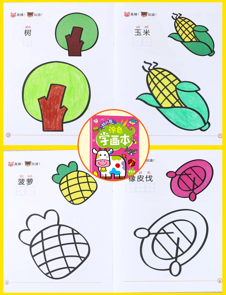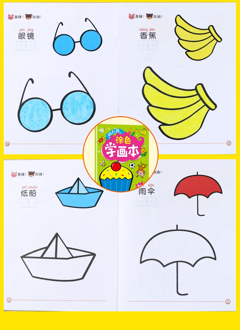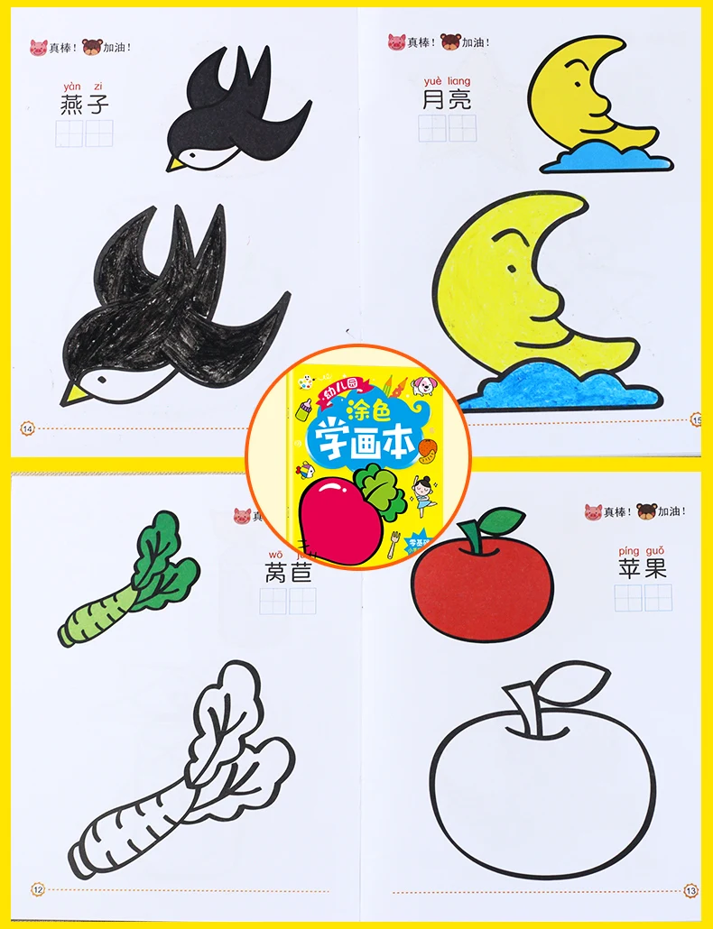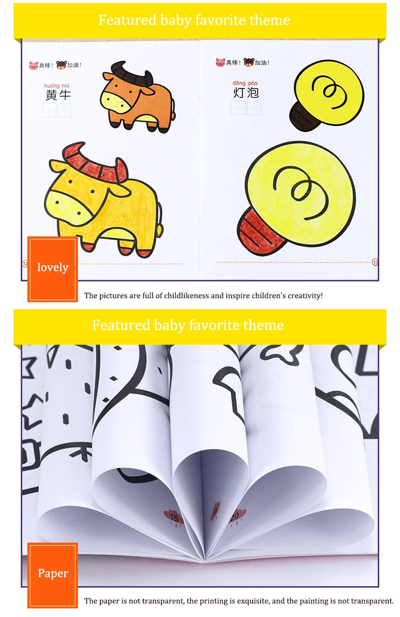 Китайские персонажи, копировальная книга, цветной рисунок воды, цветные книги для детей, детский сад, детская книга с граффити