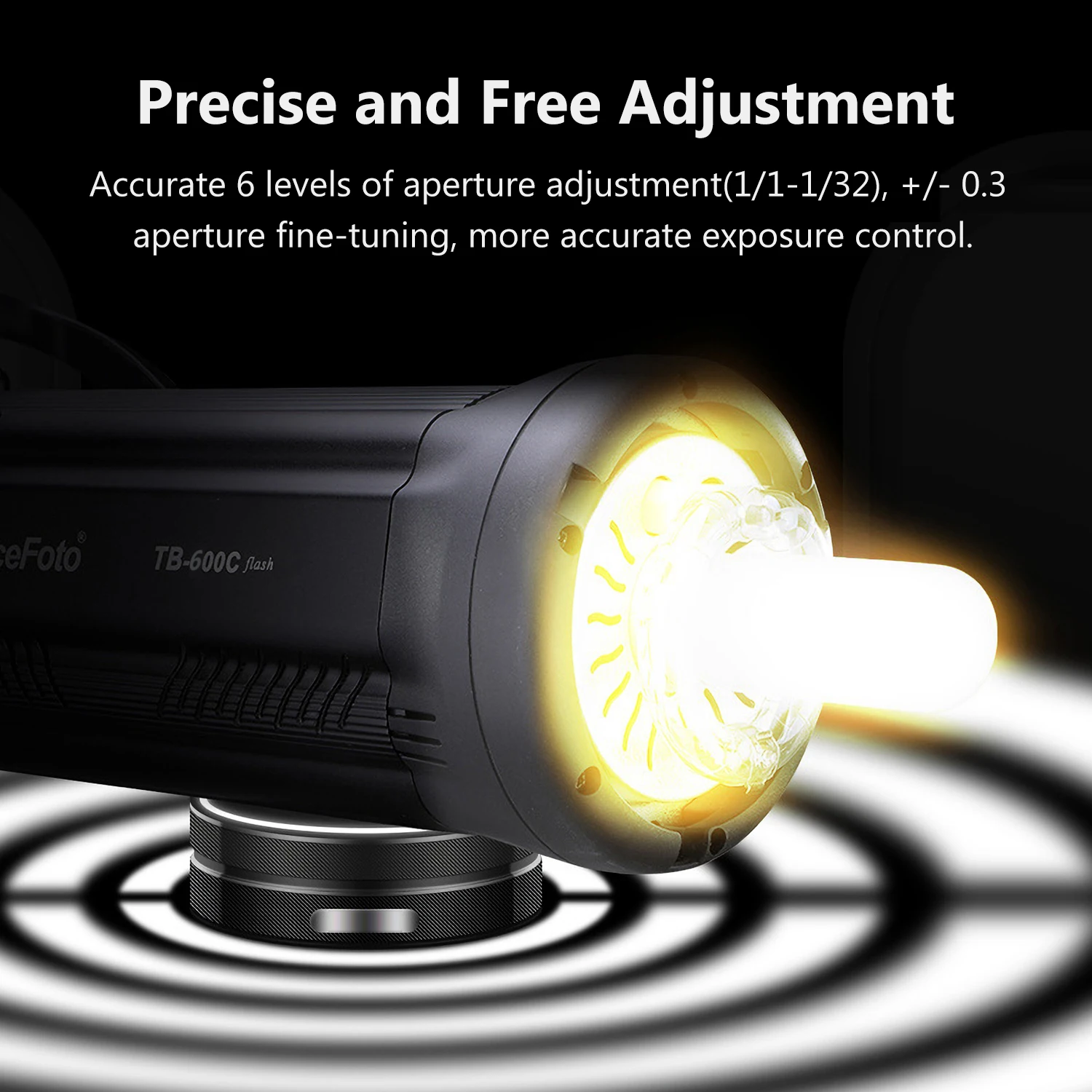 Точная регулировка:Точный шестиуровневое диафрагма 1/1-1/32 регулировки, может быть ± 0,3 диафрагмы, тонкая настройка, управлять экспозицией более точно.