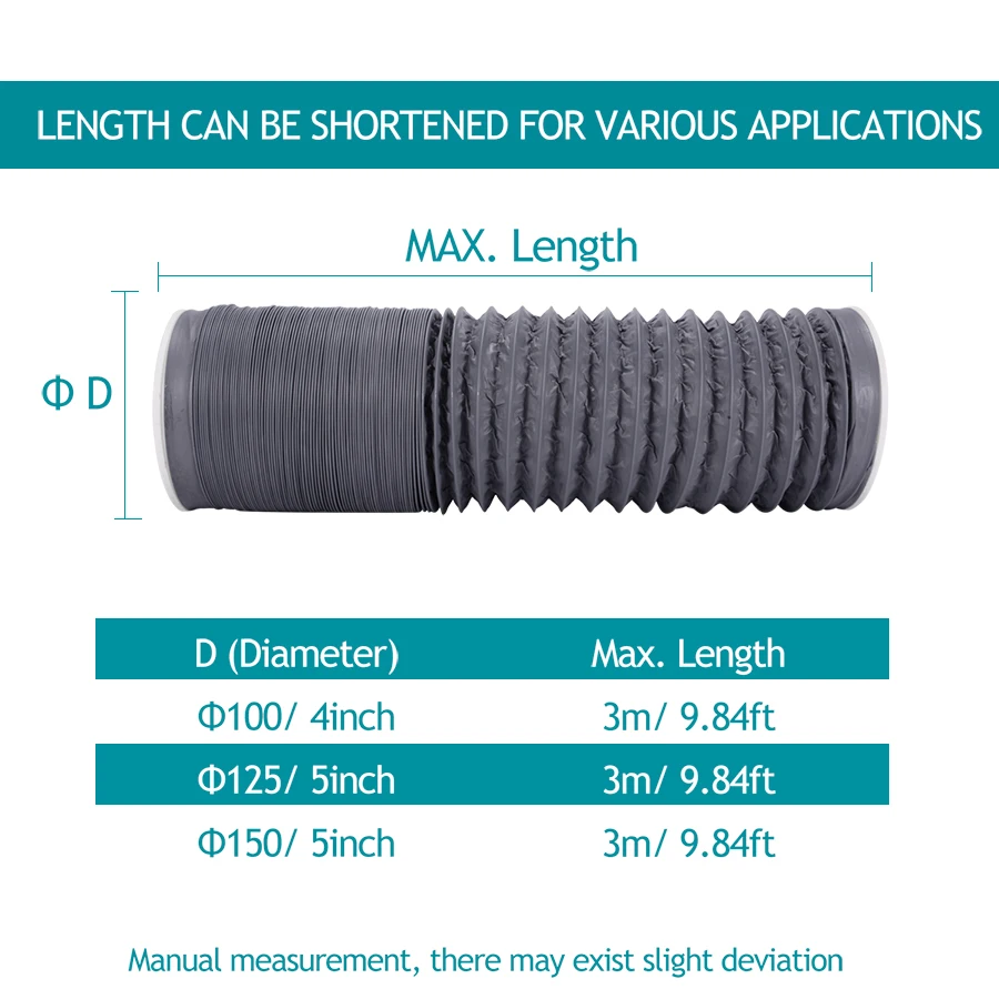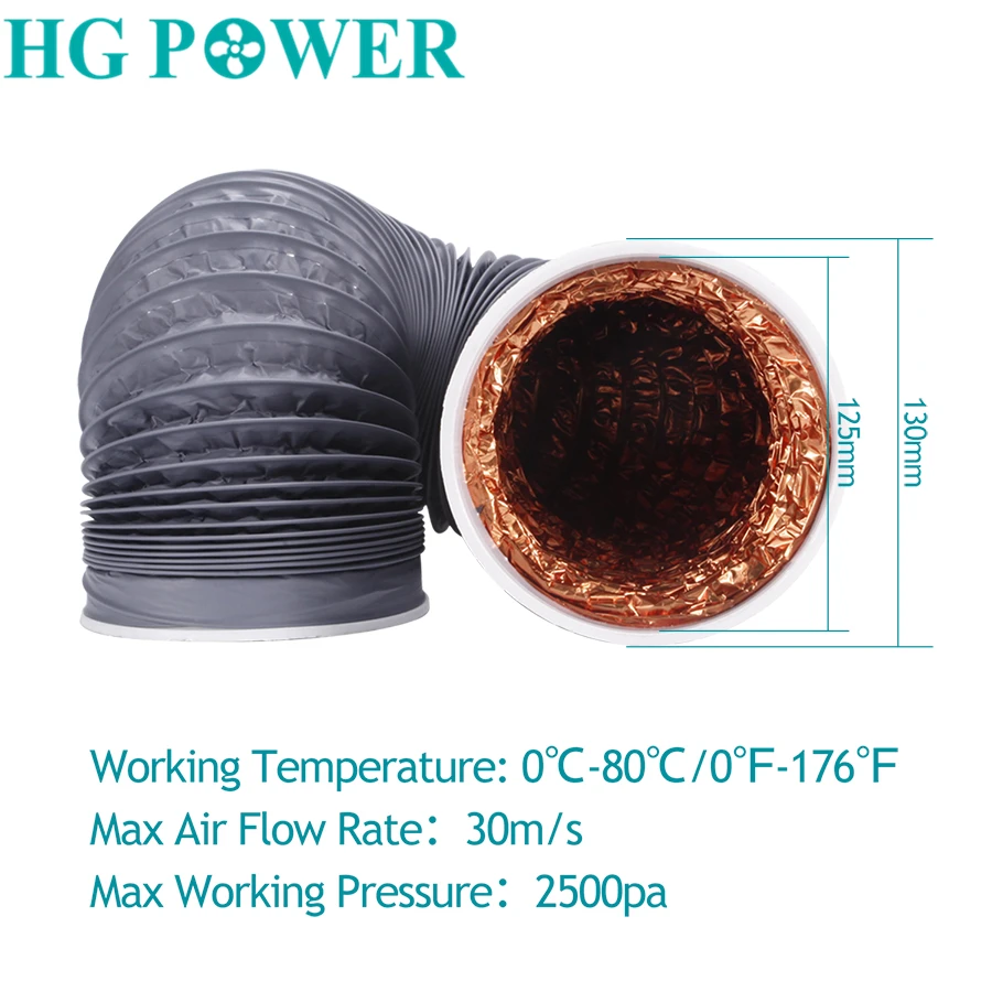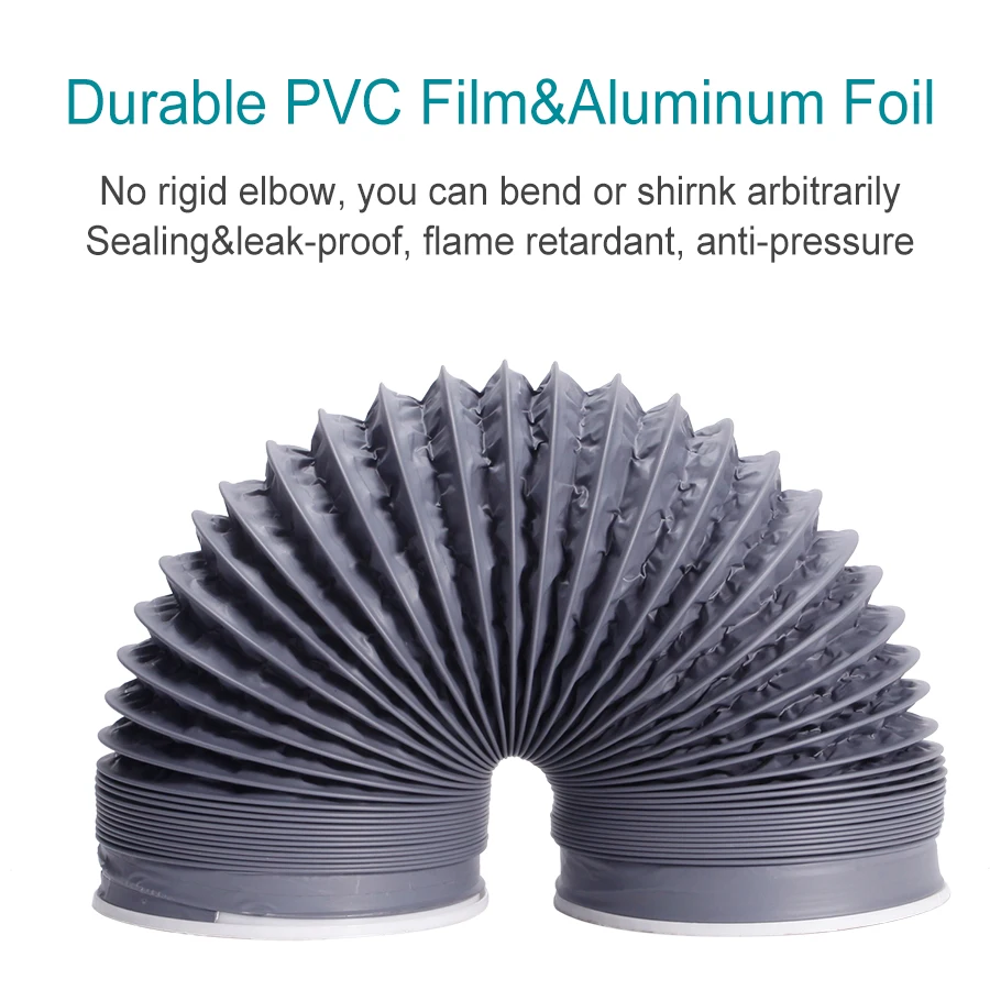 Параметры Proudct: Диапазон диаметра: 100 мм-150 мм (4 "-6") Диапазон температур: от-30 °C до 150 °C. Максимальная скорость воздуха: 30 м/с Максимальное рабочее давление: 2500 Па Стандартный размер: 2 м/3 м Особенности: 1. Шланг из ПВХ изготовлен из высокопрочной огнезащитной ПВХ-пленки, обернутой высокоэластичной спиральной стальной проволокой, 2. Он обладает высокой прочностью, может противостоять кислотным и щелочным отходам газа, воздуховод мягкий, и эластичность сильна. 3. Подходит для всех видов машинного всасывания пыли, выхлопных газов и различных выхлопных систем; Подходит для кондиционирования воздуха, вытяжки, сушильной машины. 4. Материалы: изготовлены из ПВХ, алюминиевой фольги, прочные и практичные в использовании. Устойчивость к ударам, коррозии и огнестойкости. Посылка: 1 x вентиляционный канал из ПВХ.