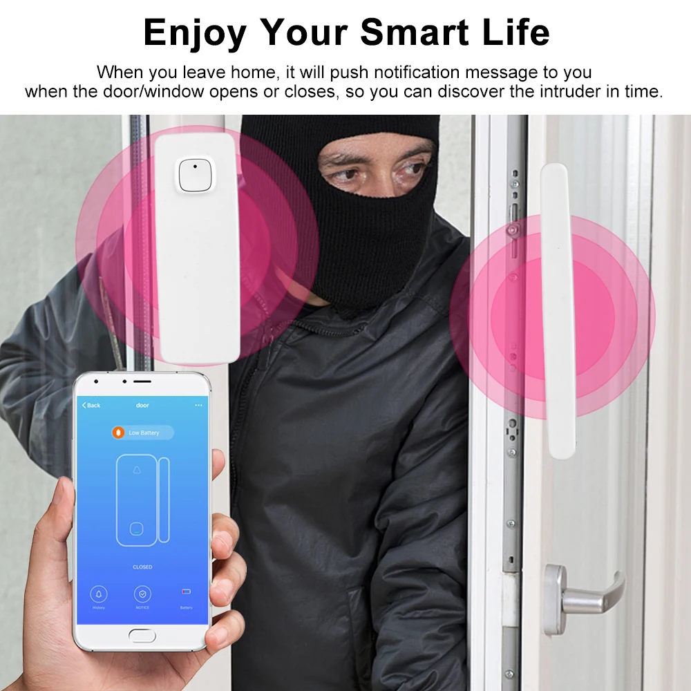 [Наслаждайтесь вашей умной жизнью]Когда вы выходите из дома, он будет направлять вам уведомления при открытии или закрытии двери/окна, чтобы вы могли вовремя обнаружить нарушителя. Перезаряжаемая литиевая батарея экономит хлопот и расходы на постоянную замену батарей.