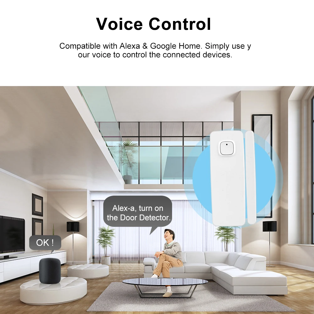 [Умное Голосовое управление]Совместим с Alexa и Google Home. Просто используйте свой голос для управления подключенными устройствами. Он также может выполнять автоматическое управление вместе с другими смарт-устройствами, которые совместимы с smart Life или IFTTT. Удобно для обнаружения ваших дверей, окон, шкафов, ящиков или в любом месте, где вы хотите получить уведомление, когда он открыт или закрыт.
