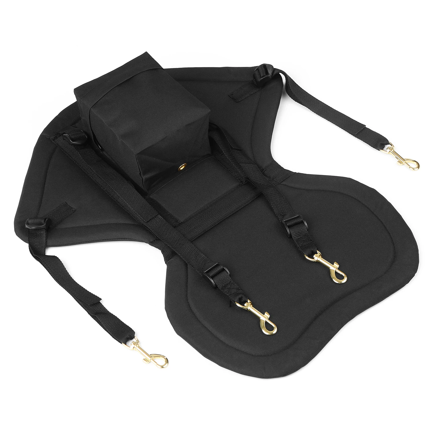 Регулируемые передние и задние ремни с металлическими пружинными крючками, легко помещаются на любое сиденье.