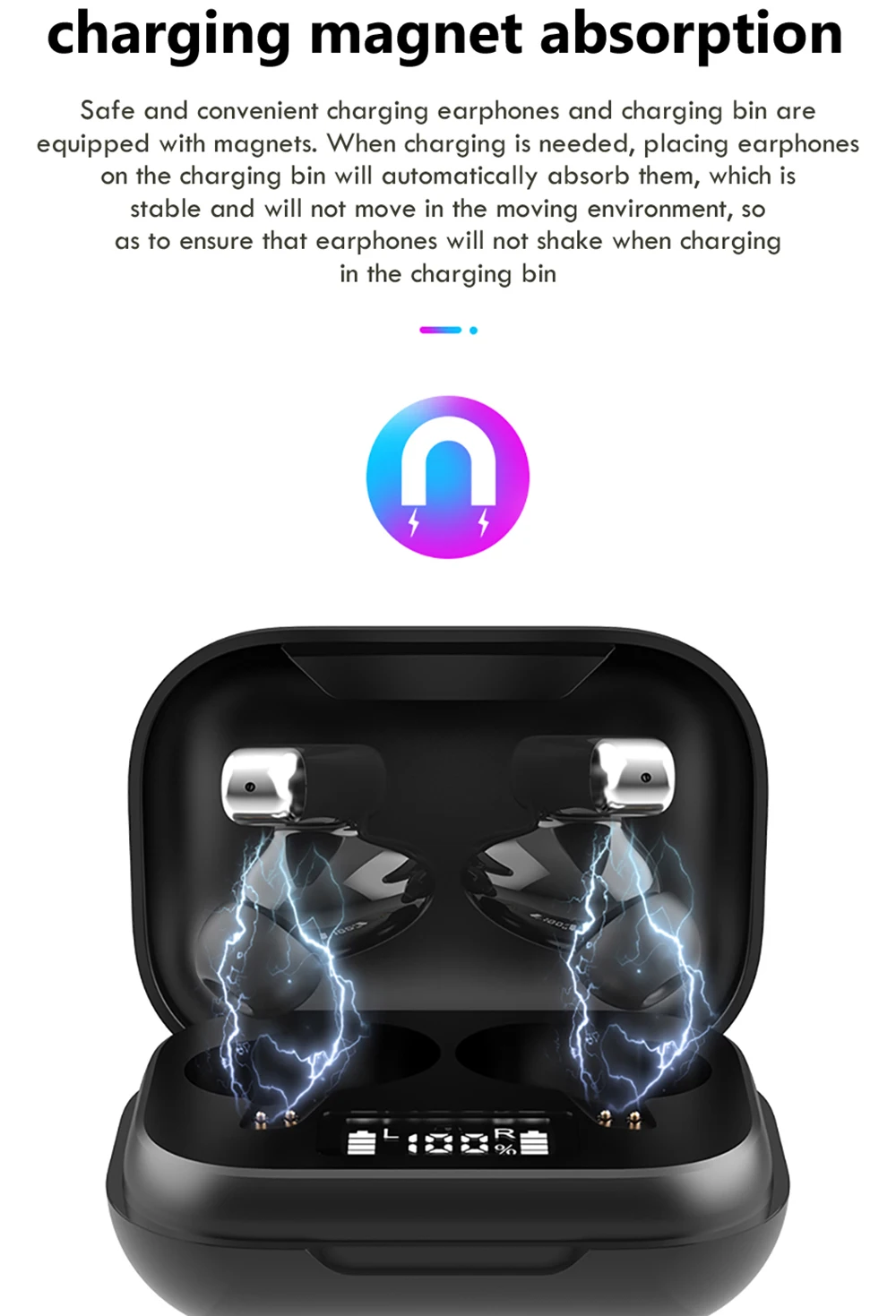 Зарядное устройство гарнитуры оснащено светодиодный дисплеем питания. Он может интуитивно отображать оставшийся статус аккумулятора зарядного отсека и гарнитуры, позволяя вам быть в курсе состояния батареи, чтобы разумно организовать Срок службы батареи, чтобы вы могли продолжать наслаждаться прослушиванием музыки.