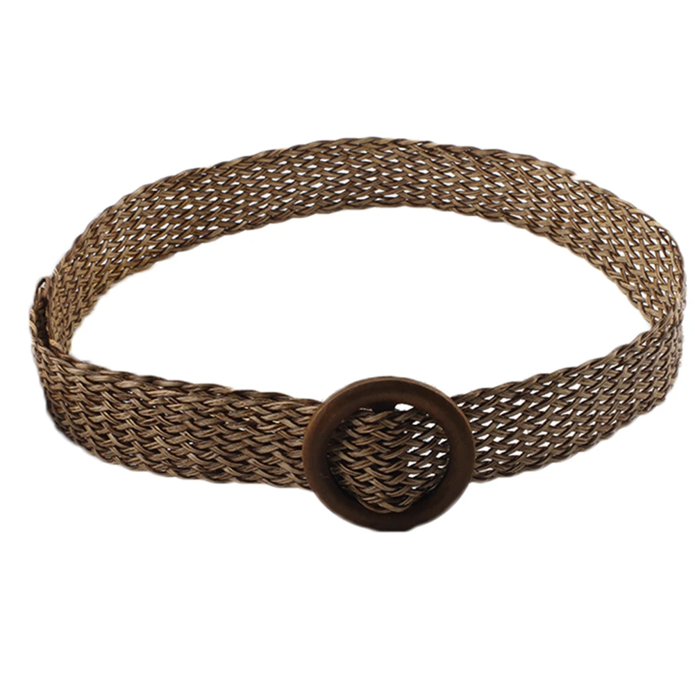 Летний широкий Плетеный соломенный ремень с круглой деревянной пряжкой