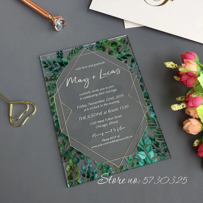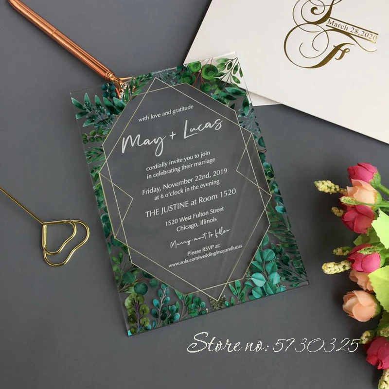 Бесплатная доставка акриловые формы лазерной резки пользовательские акриловые приглашения на свадьбу прозрачные приглашения эвкалипт дизайн свадебные открытки