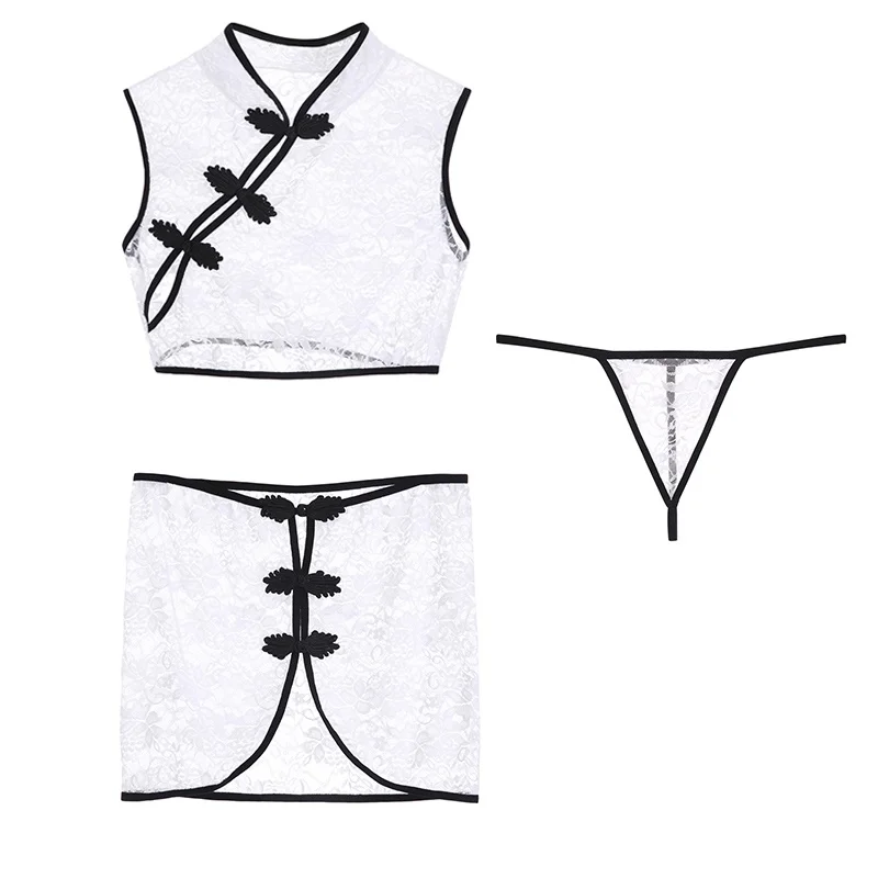 Пикантная Пижама, женское нижнее белье, комплект в китайском стиле чонсам, кружевной Цветочный топ с узлом и трусики, домашние костюмы одежда в стиле Babydoll