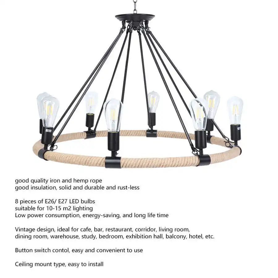2. Принимает 8 E26/ E27 светодиодный ламп, подходит для освещения 10-15 м2. Низкое энергопотребление, энергосбережение и долгий срок службы.