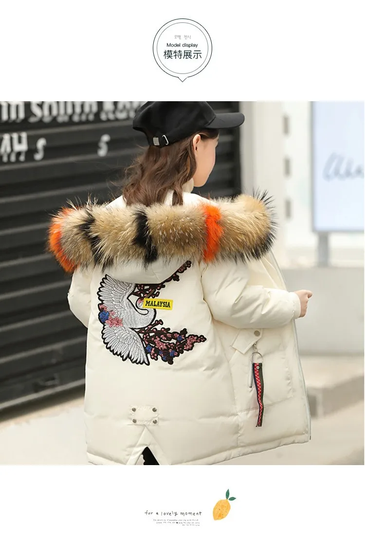 2020 Детский пуховик, зимняя Корейская версия, для отдыха, для девочек, для больших детей, утепленная, с капюшоном, для детей, средней длины, пуховик