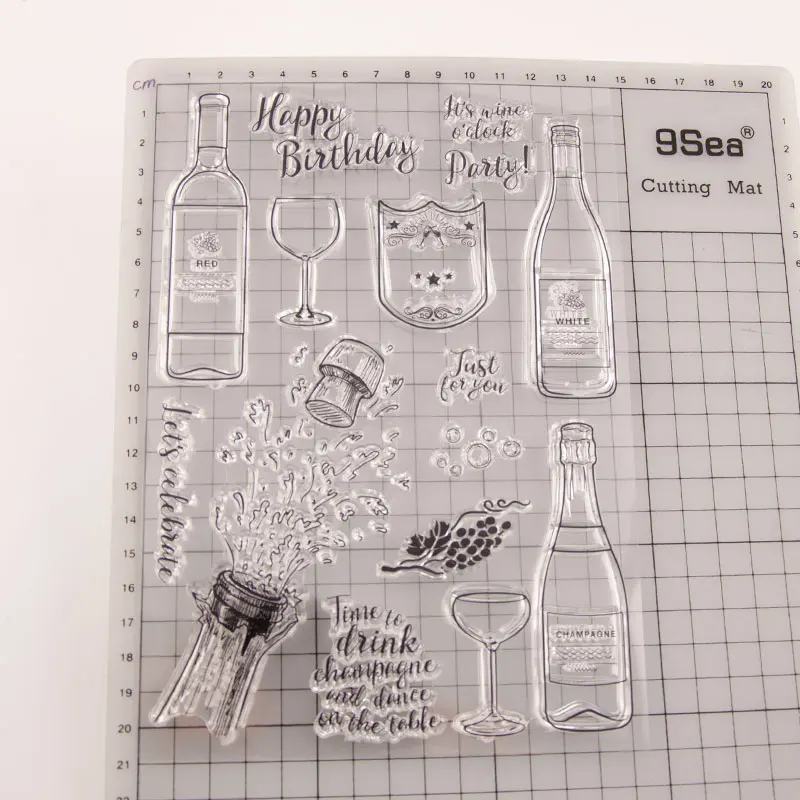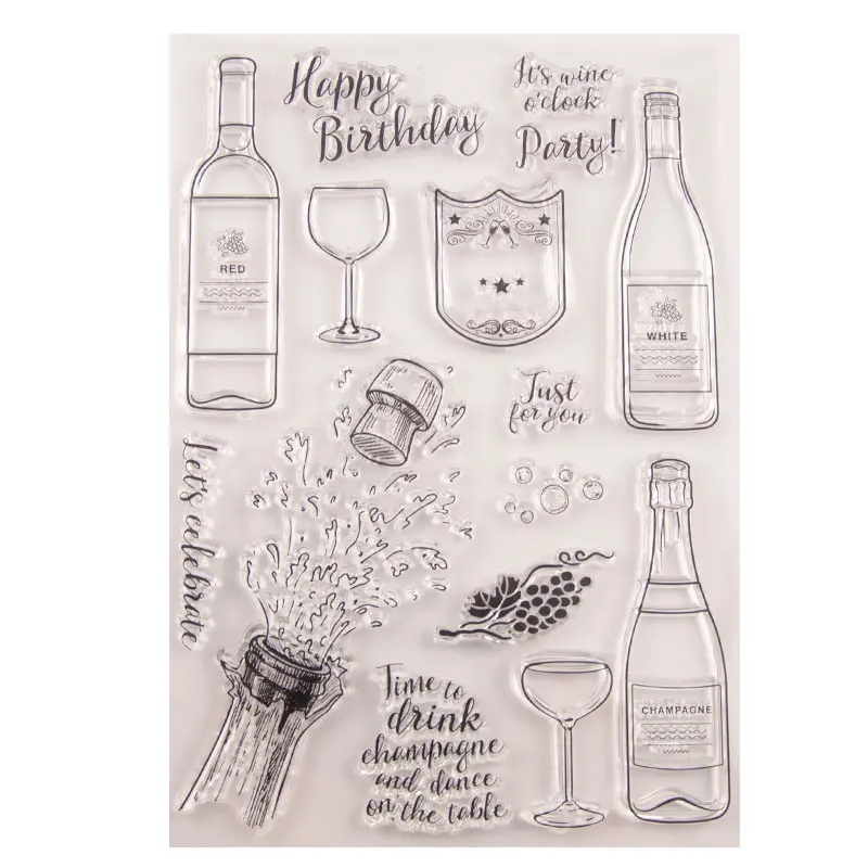 Бутылка для дня рождения вина стеклянная Резина прозрачные штампы для DIY Скрапбукинг Фотоальбом резка ремесла трафарет штамп
