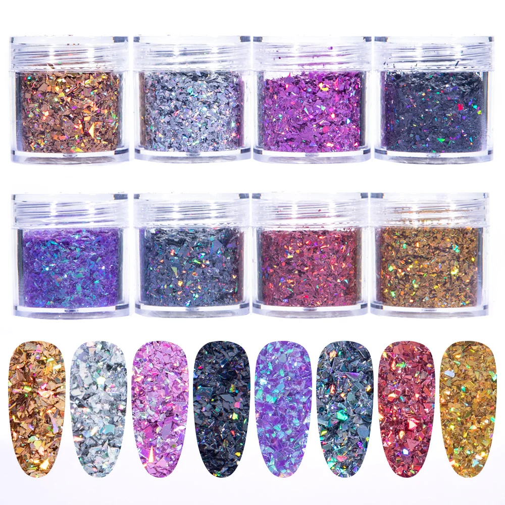 1 банка для ногтей блестки порошок смешанные формы нерегулярные Блестящие Блестки для ногтей хлопья хромовые пигментные принадлежности Красочные Блестки