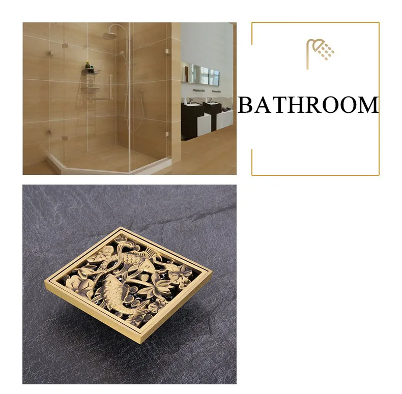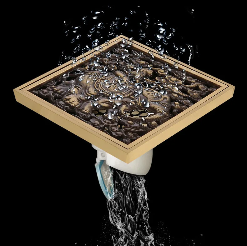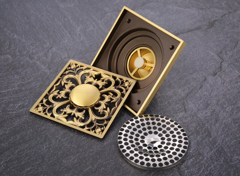 Античный латунный отсек для душа, отсек для слива, линейные стоки для душа, ванная комната, трафаретная решетка для волос