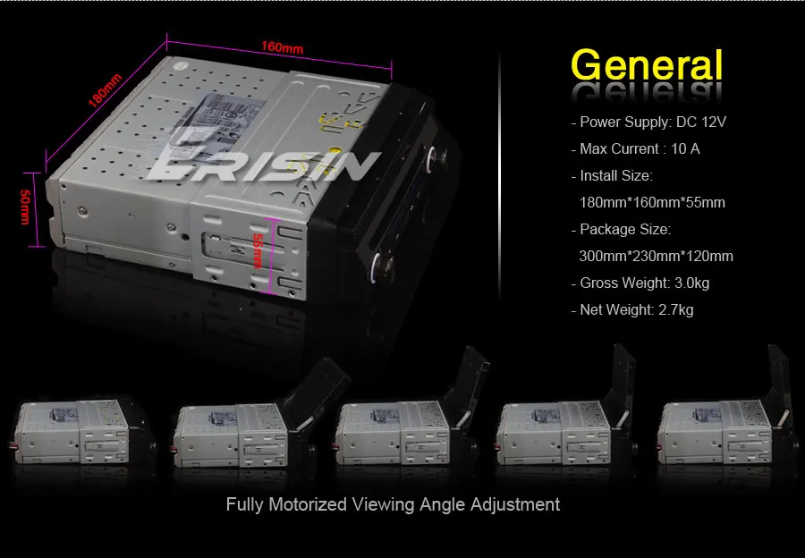-Съемная передняя панель для противоугонной конструкции, полностью моторизованный выдвижной экран, регулируемый угол обзора
