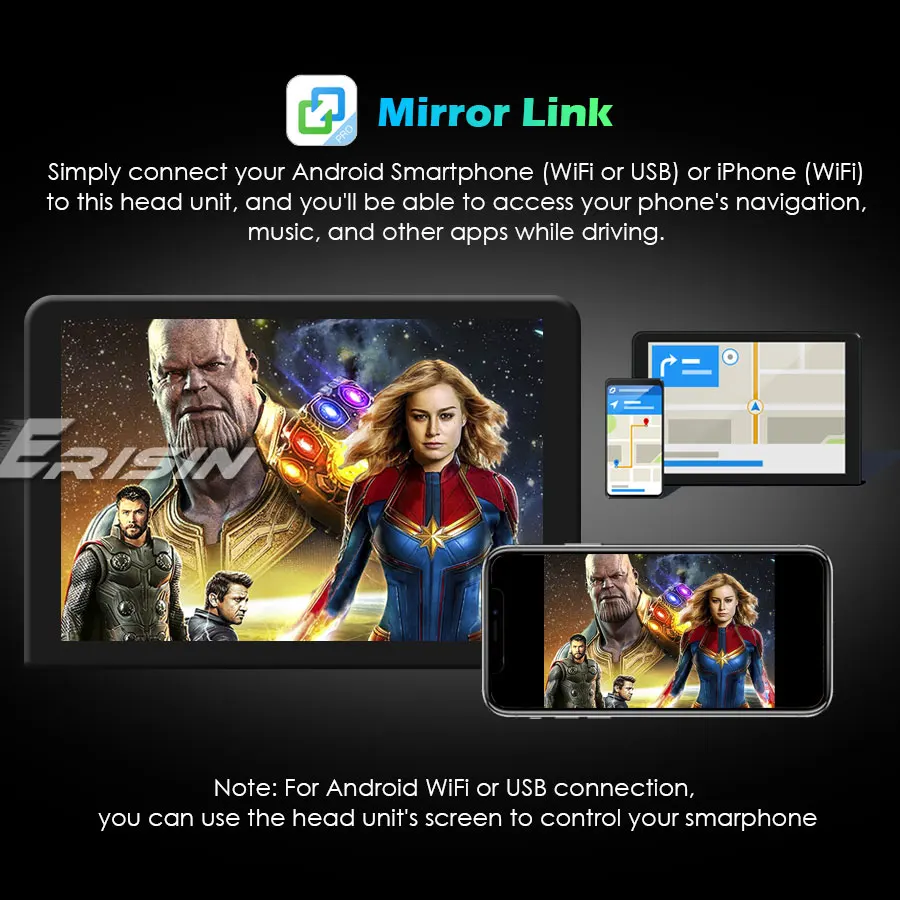 -Поддержка зеркальной связи с iPhone через WiFi и с Android смартфоном через USB или WiFi.