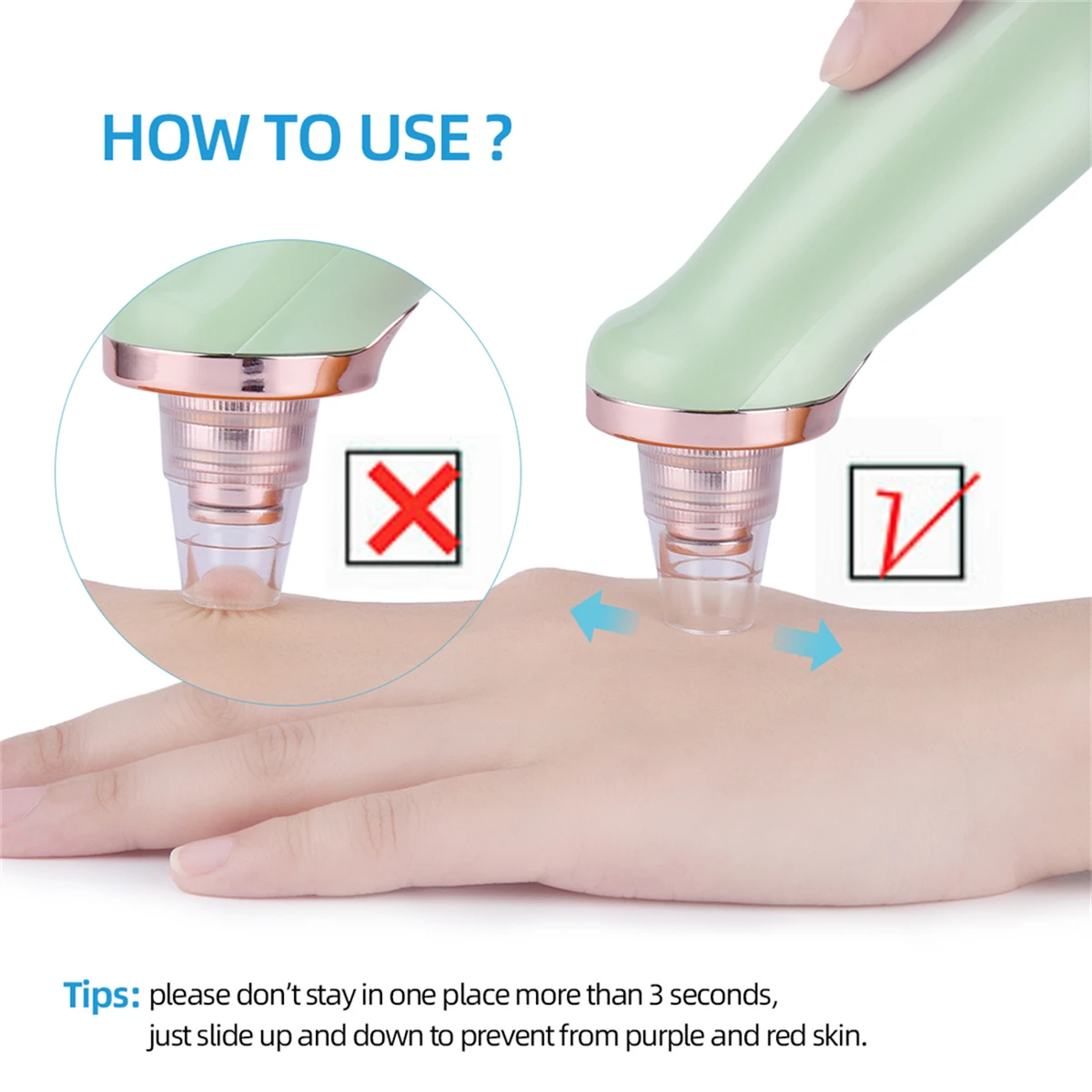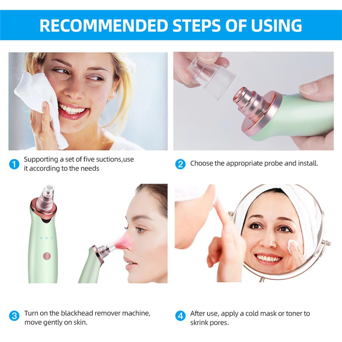 Упаковано с 4 различными зондами для решения всех ваших потребностей, удаления черных точек, жира, косметических остатков, прыщей, морщин из разных частей вашего лица, также эффективно для микродермабразии, улучшения жизнедеятельности кожи, помогает разогнать поры и делает вашу кожу гладкой и подтянутой.