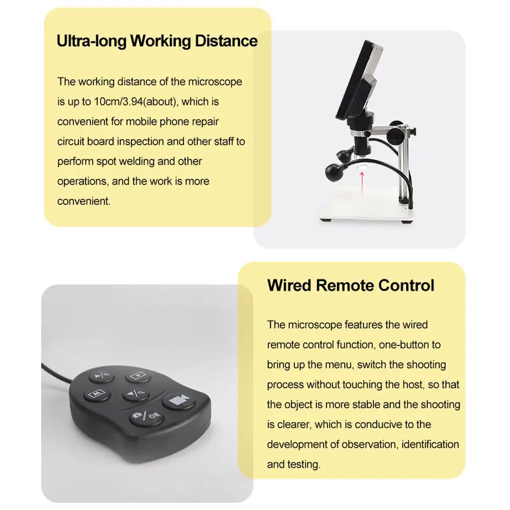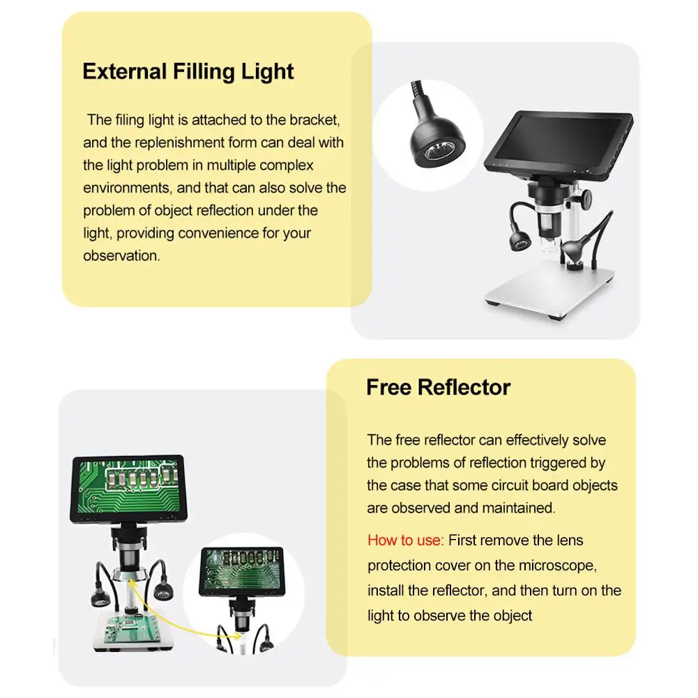 1. Широкое применение: микроскоп широко используется для компьютерного осмотра деталей, контроля сварки электронных компонентов, научных учебных инструментов, бетона, проверки кожи головы, идентификации ювелирных изделий и других аспектов.1 x Инструкция
