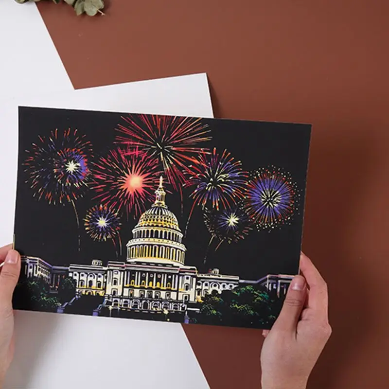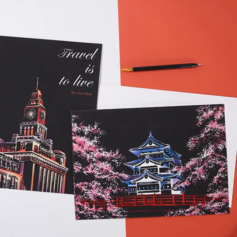 Creative DIY Scratch Scraping Painting Night View Sightseeing Pictures Toys for Children Handmade Educational Toys Gifts