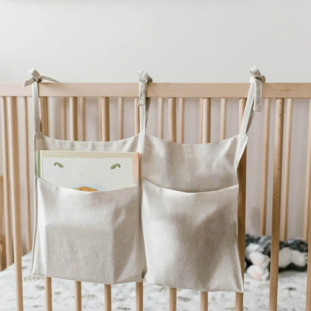 * 1. Два кармана, регулируемые ремни для легкой подвешивания, легко повесить на кроватку или стену.