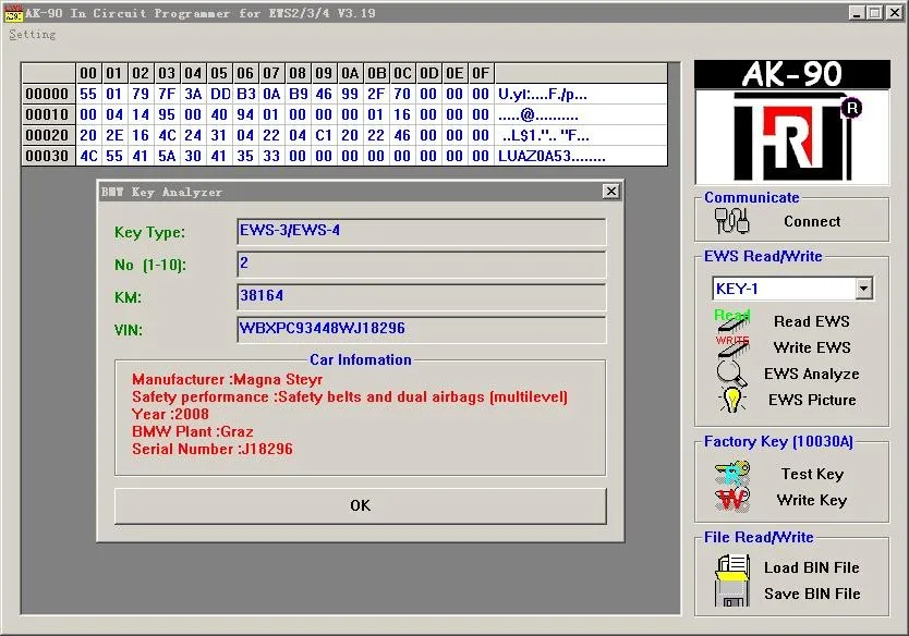 AK90 + для BMW KEY-PROG программный ключ, чтение и запись ключевой информации для BMW EWS 1995-2009; Улучшить скорость чтения и записи для некоторых систем EWS. Этот продукт является лучшим инструментом для ключей BMW EWS, безопасным и эффективным в использовании.