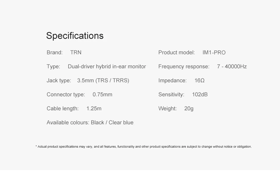 1. Название продукта: TRN IM1 PRO 1DD + 1BA 2Pin провод на заказ наушники