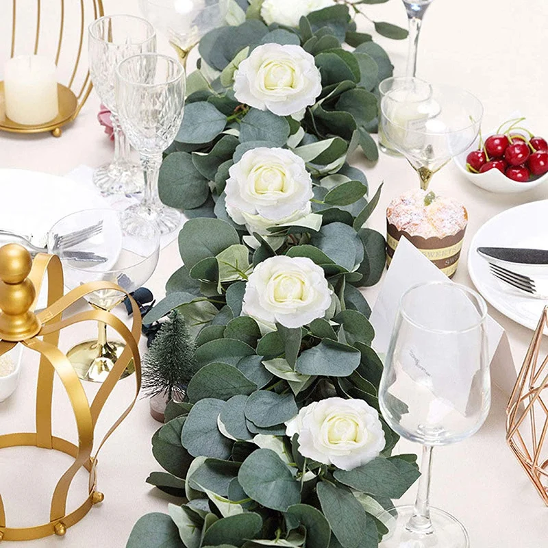 Эвкалиптовая гирлянда эвкалипта Искусственные цветы лозы шелковая эвкалиптовая зелень гирлянда для центрального свадебного арки фон Wal<Мета http-equiv = "содержание-тип" = "текст/html; charset = utf-8" />
