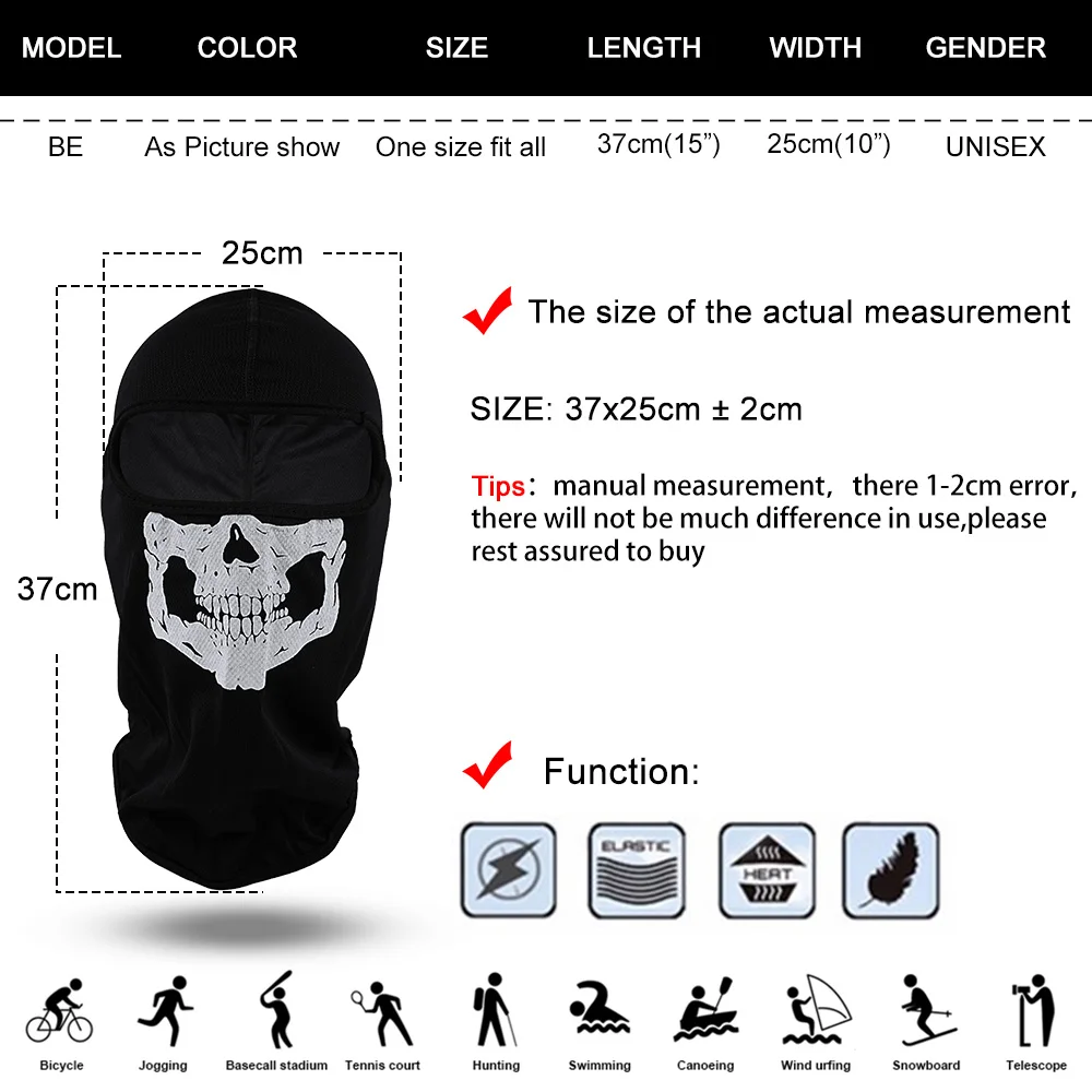 1. Предельная защита от холода, ветра, пыли, мусора, насекомых, ультрафиолетовых лучей и других нежелательных лучей. 2. Универсальная Балаклава унисекс. Идеально подходит для женщин и мужчин, защищает себя и семью. 3. Ткань обеспечивает первоклассную воздухопроницаемость, впитываемость, влагостойкость, долговечность и стойкость к истиранию. Очень мягкий. Без морщин. Легкий. Оставайтесь в тепле и сухом состоянии. 4. Улучшенный крой и различный угол шитья для лучшей посадки на голове, эти мелкие детали делают все возможное. Можно носить как маску для лица или шляпу, Балаклаву, Гетр для шеи или сахарский стиль и худи ниндзя. 5. Один размер подходит для большинства. Можно носить самостоятельно или под любым видом шлема. Ткань гипоаллергенна и не раздражает кожу. 4-слойная трикотажная. Плоские швы. Машинная стирка. Очень быстро сохнет. 6. Используется круглый год, летом, впитывает пот и защищает от солнца. Зимой он защищает от ветра и холода.